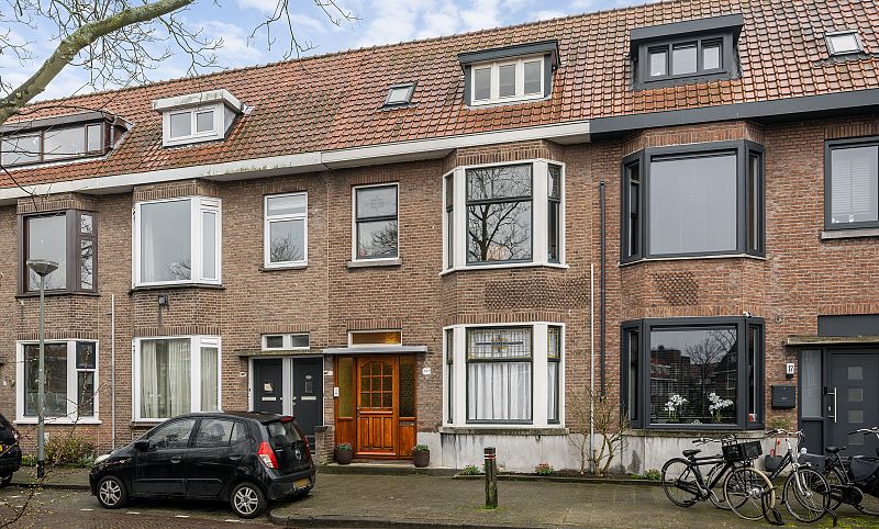 Een verrassend ruime dertiger jaren woning van bijna 150m2 woonoppervlak met een zonnige tuin op het zuiden en met een grote houten berging. De woning bevat 5 kamers (voorheen 7 kamers). Ideaal voor kopers met een groot gezin, geschikt voor dubbele bewoning of voor mensen die veel woonruimte wensen. De woning bevat diverse jaren'30 details zoals: glas in lood bovenramen, paneeldeuren, hoge plafonds en is deels gemoderniseerd. De woonkamer met een halfopen keuken van totaal ca. 41m2 bevindt zich nu op de 1e verdieping. Hierdoor ervaar je privacy, een schitterende lichtval en een vrij en ruim uitzicht op het grote plein voor de woning. De locatie in deze populaire jaren'30 wijk (Schiedam-west) is ideaal met dichtbij metro station Troelstralaan, een supermarkt en diverse buurtwinkels. Voor de woning is het vrij parkeren. Het historisch centrum van Schiedam met alle voorzieningen is binnen 5 minuten fietsafstand te bereiken.