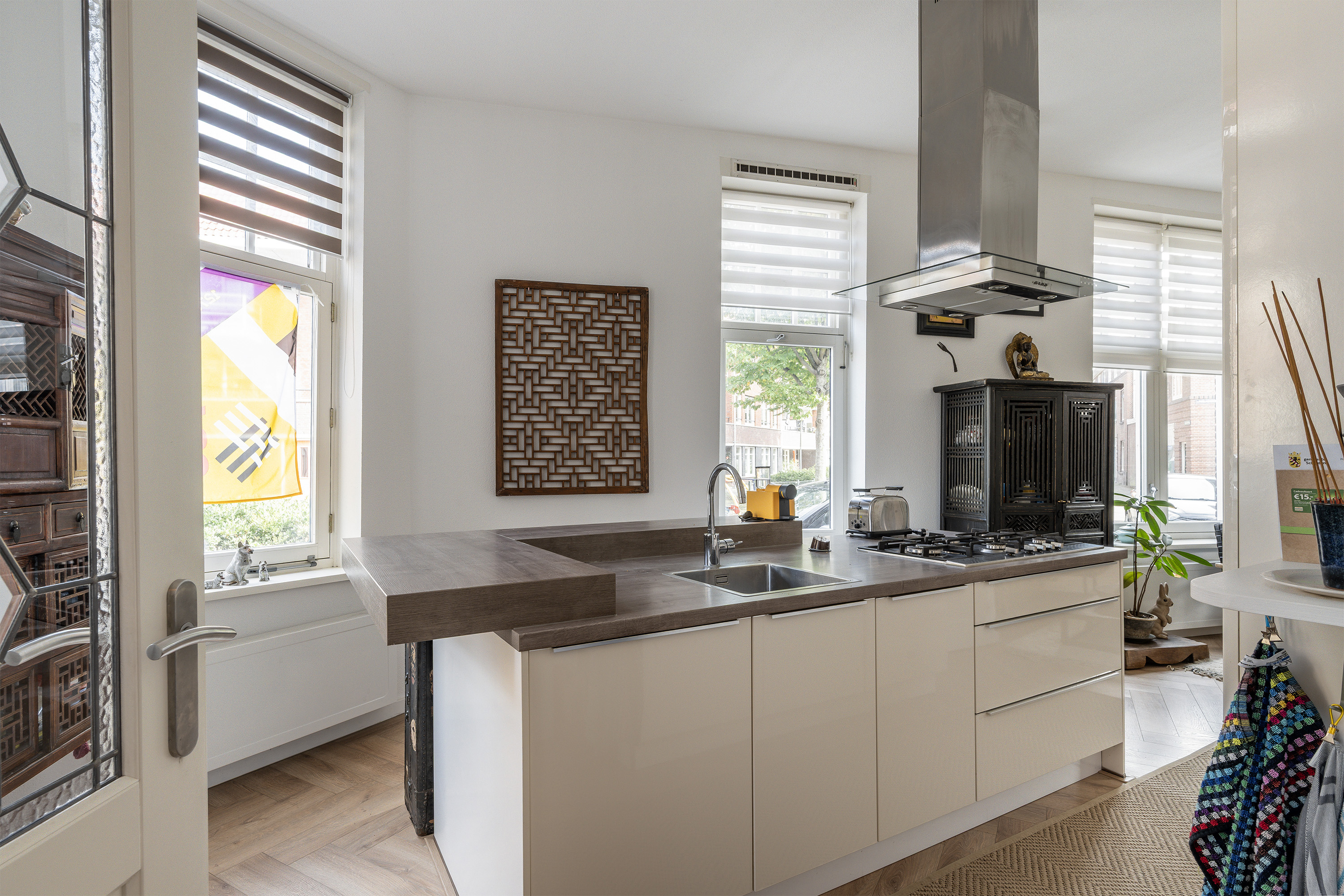 -Geheel voorzien van hardhouten kozijnen met dubbel glas;
