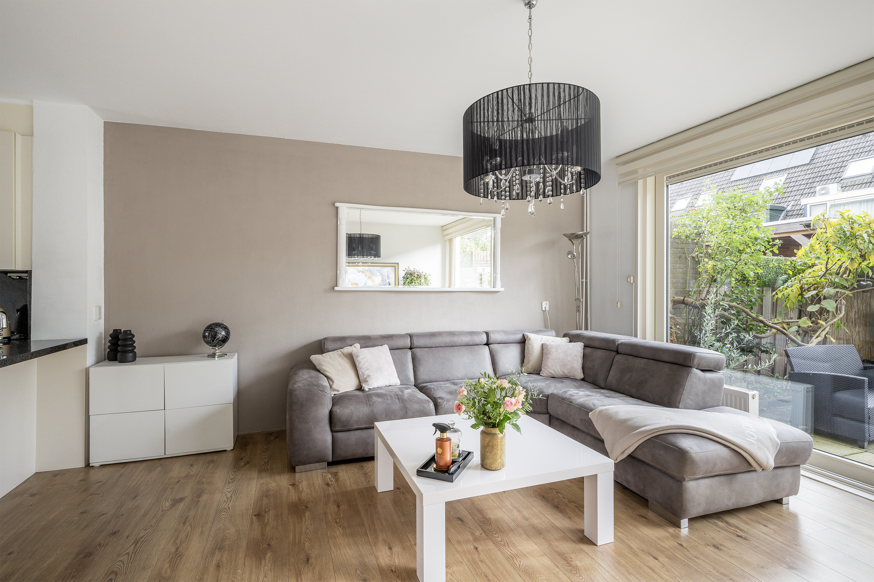 Entree woning, hal, diepe meterkast, toilet met hand wasbakje. Riante woonkamer inclusief keuken van totaal ca. 45m2 voorzien van een mooie grote kunststof schuifpui. De woonkamer heeft een ruime zithoek, woonkeuken, een mooie lichtinval en een leuk zicht op de tuin. De moderne keuken is voorzien van een granietenblad en wand, een vaatwasser, koelkast, oven, inductie kookplaat, afzuigkap en veel kastruimte. Aan de voorzijde is een directe toegang naar de bijkeuken/wasruimte, ook met opstelling wasm.droger en voorzien van veel kastruimten. Heel praktisch in gebruik.