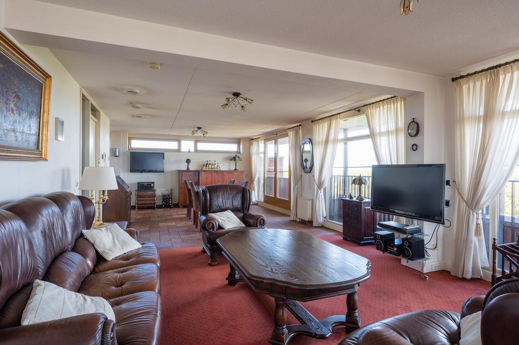 Het terras loopt grotendeels rondom het appartement met 2 zitgedeeltes. Alles bij elkaar hebben de buitenruimtes een oppervlakte van ruim 23m2.