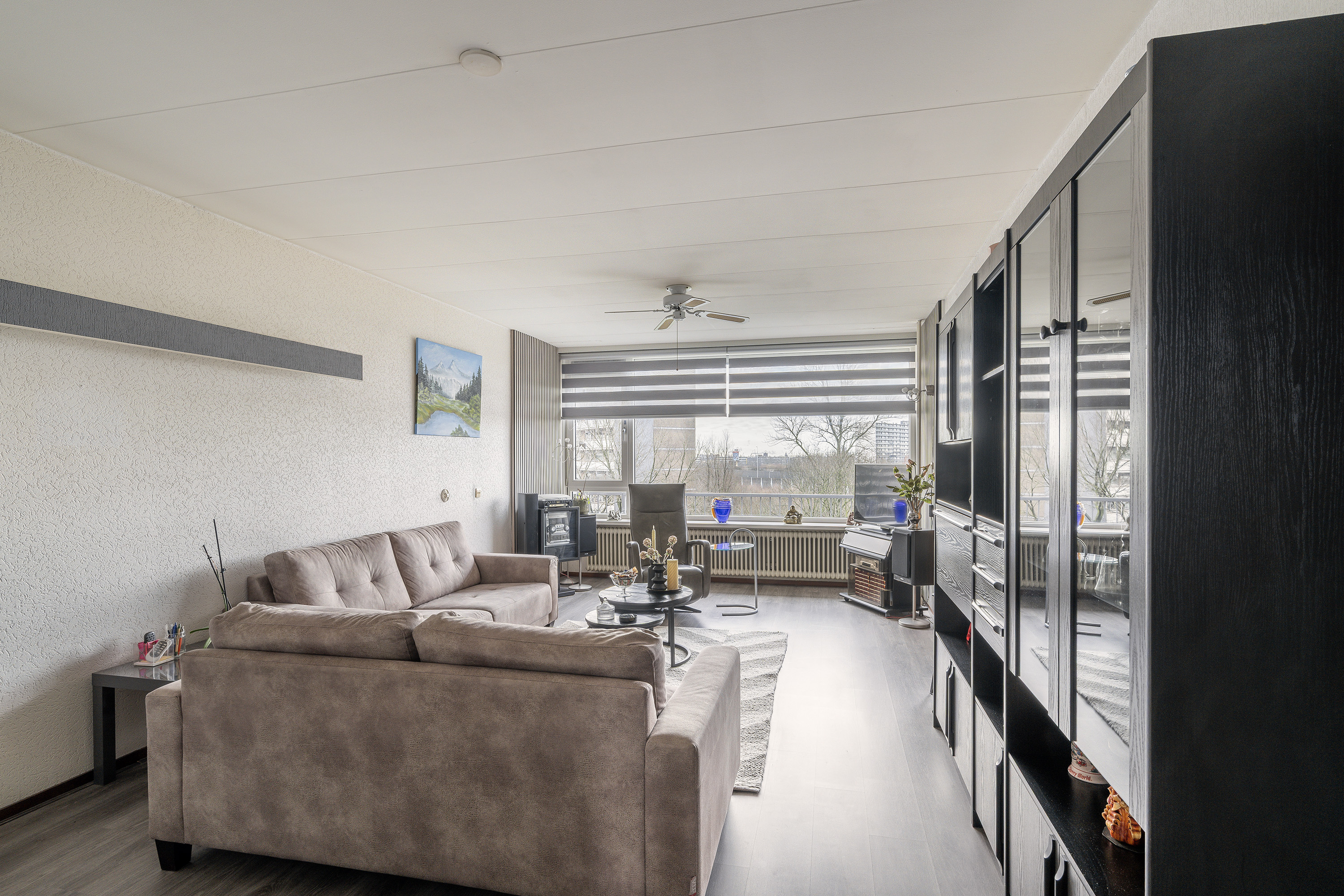 Spacious 5-room apartment located on the 7th floor. This generously sized apartment features a neat, simple kitchen and sanitary facilities. The view from the 7th floor is exceptionally wide and open! The property is situated in a well-maintained apartment complex (with an active homeowners’ association) equipped with multiple elevators. Adjacent to the complex is a large green area, providing a sheltered setting and a pleasant view. The location in Schiedam-Groenoord is very central in relation to public transport, shops, and various main roads.