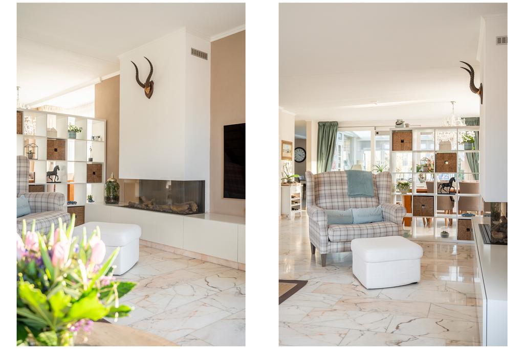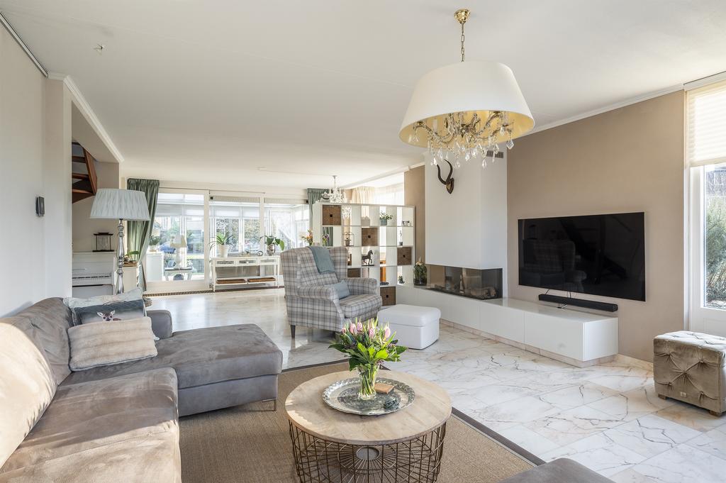 Entree, hal, meterkast, vrijhangend toilet met handwasbakje. Royale living van ca. 62m2, inclusief woonkeuken zelfs ca. 85m2. De woonkamer heeft een mooie lichtval is voorzien van een natuurstenenvloer met vloerverwarming, een gashaard, een erker en geeft toegang naar de woonkeuken en de serre. De keuken geeft ook toegang naar de serre en is voorzien van veel kastruimten, een keramische kookplaat, vaatwasser, koelkast, combimagnetron, heteluchtoven en afzuigkap. Praktische bijkeuken met veel provisieruimte, pantry met een spoelbak, wasmachine/droger en geeft een directe toegang naar de garage. een spoelbak. De tuingerichte serre van ca. 13m2 is onderheid, voorzien van vloerverwarming en heeft rondom harmonicadeuren. Een prachtige plek om te vertoeven in elk seizoen van het jaar met de natuur en tuin aan je voeten.