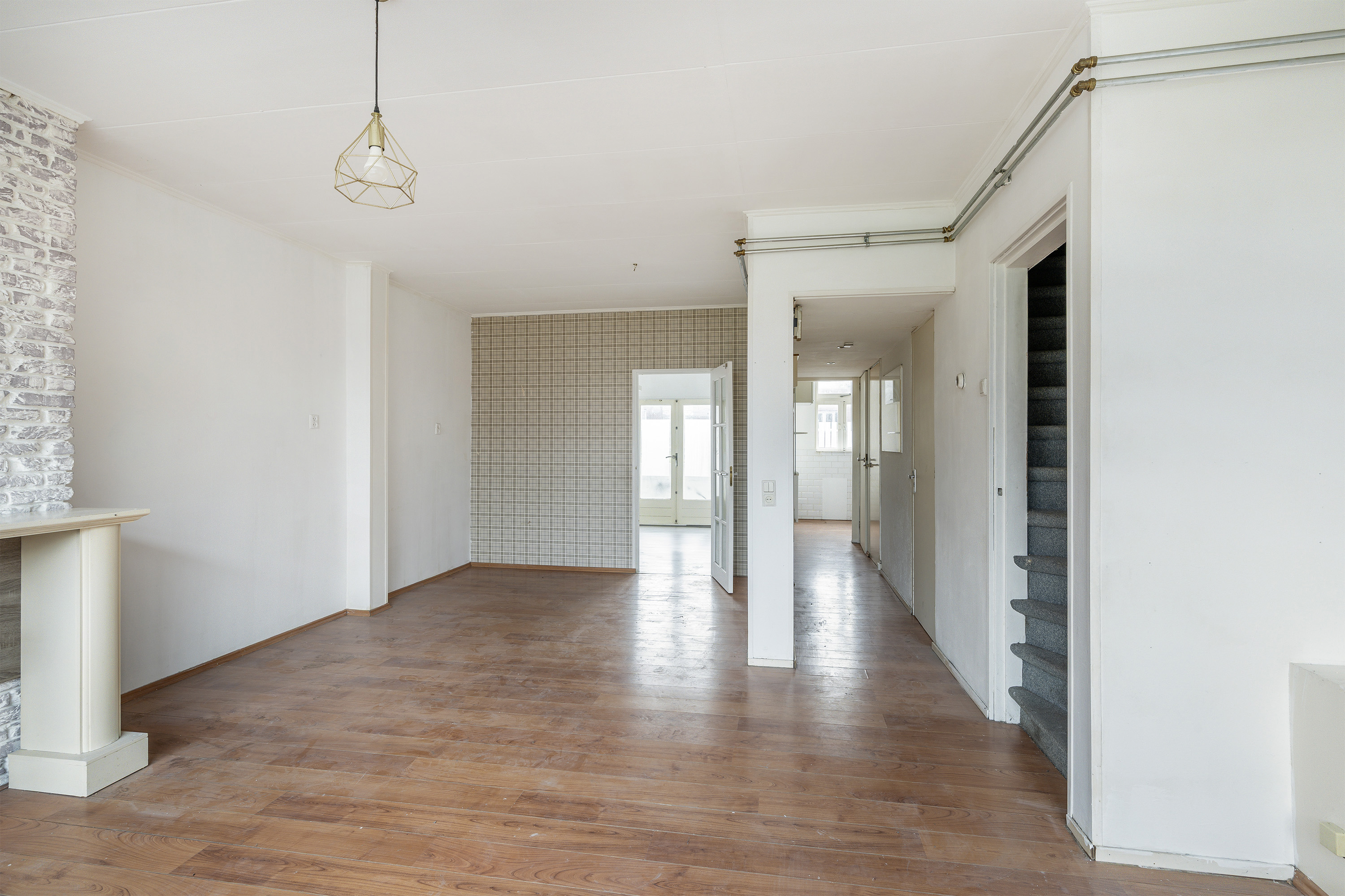 De indeling is ruim van opzet met veel lichtinval waardoor het een prettige uitstraling heeft. De woning heeft momenteel een eenvoudige uitvoering en behoeft daardoor modernisering.