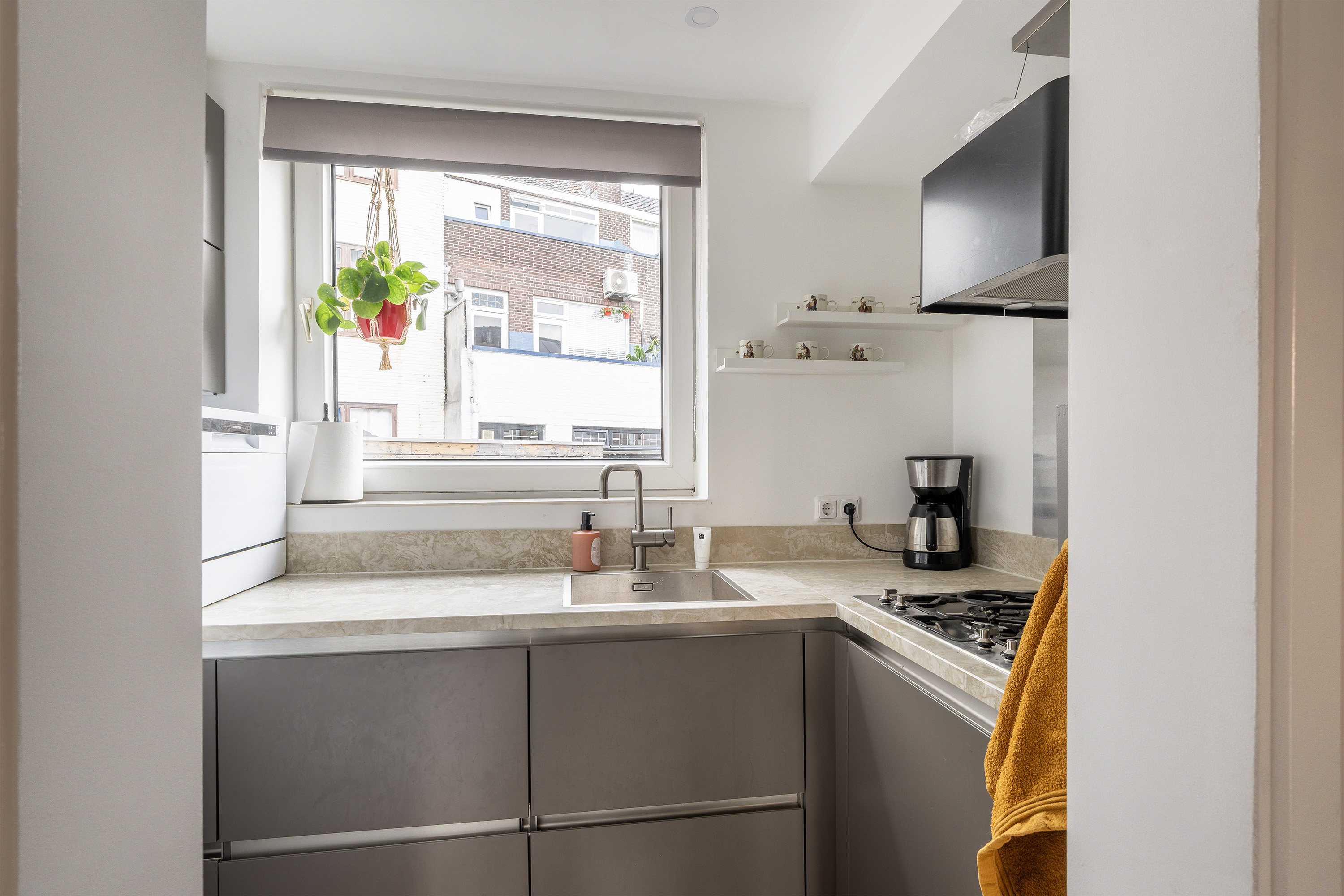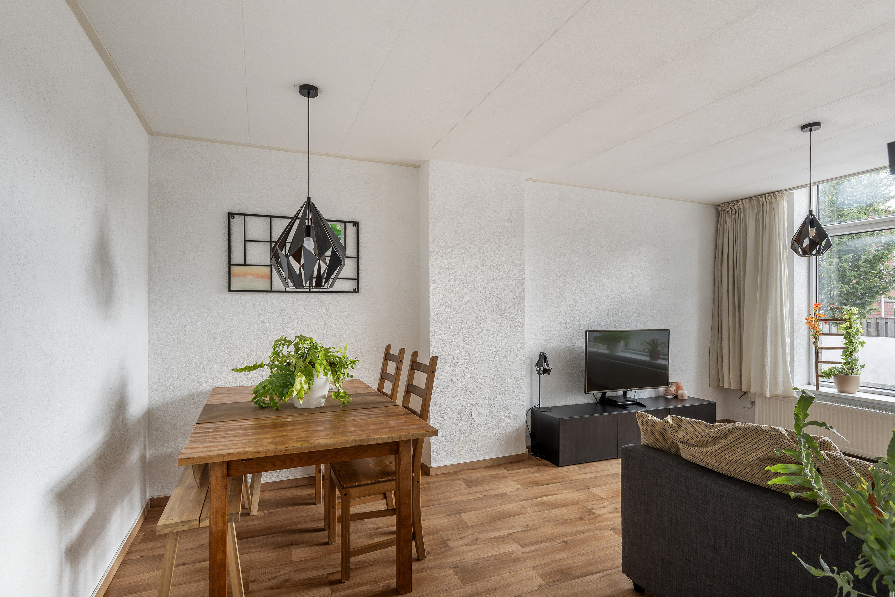 Entree, gang, praktische bergkast met veel voorraad/bergruimte en wasmachine opstelling. Toilet met een handwasbakje. Sfeervolle woonkamer van ca. 18,1m-2 met een mooie lichtinval en vrij zicht naar buiten. Slaapkamer van ca. 7,8m2 aan de achterzijde. Slaapkamer van ca. 8,7m2 aan de voorzijde. Moderne badkamer (2023) voorzien van een wastafelmeubel, inloopdouche en marmerlookwandtegels. Moderne keuken (2025) voorzien van een verlaagd plafond met ledverlichting, gaskookplaat, afzuigkap en een losse koelkast en vaatwasser. Toegang naar de tuin via de voorzijde.