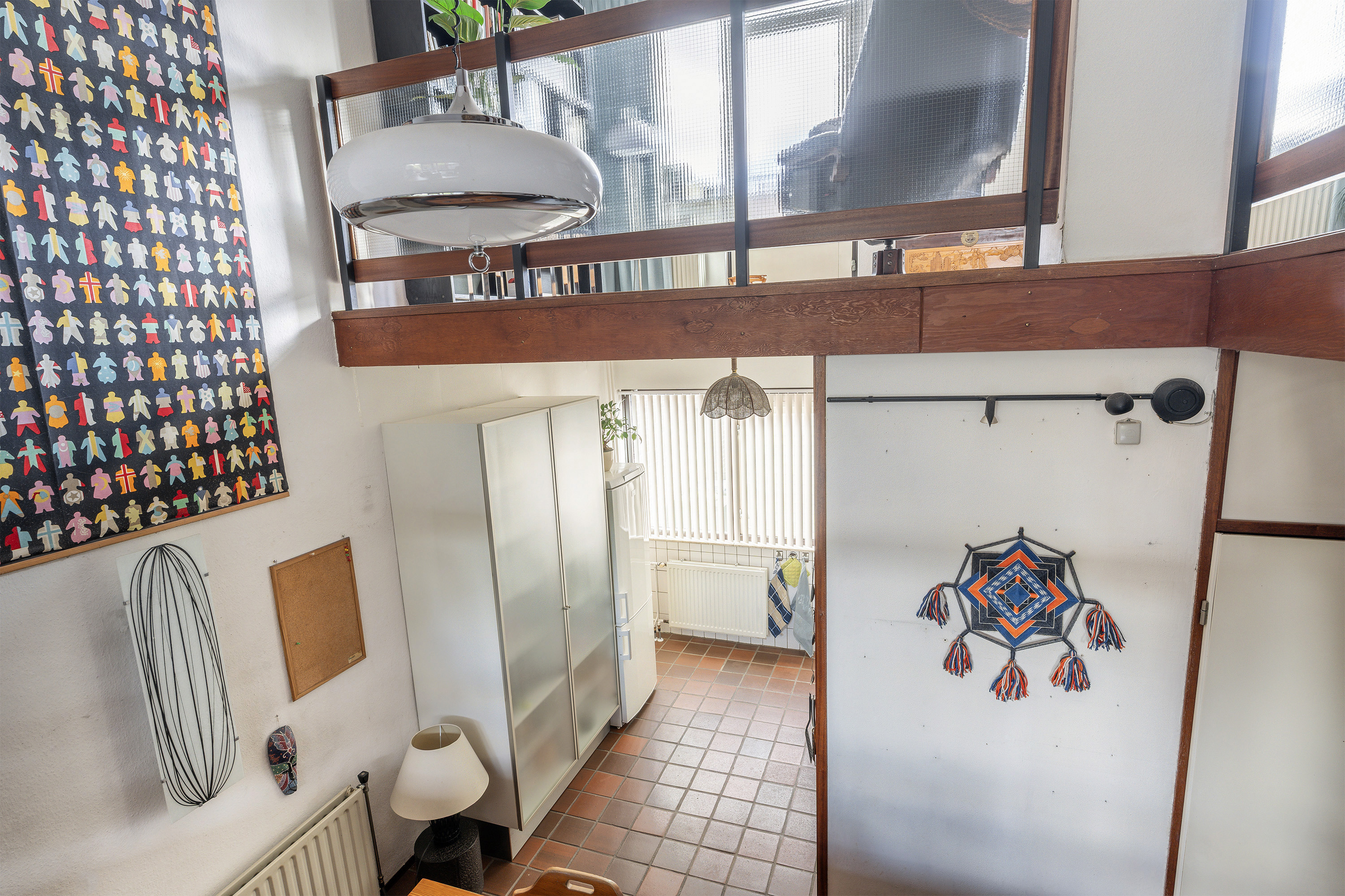 Het woongedeelte van ca. 25m2 ligt aan de achterzijde en is voorzien van een openhaard en deur richting het terras en de achtertuin. De ruimte aan de straatzijde van ca. 16m2 is een ideale hobby/werkruimte.