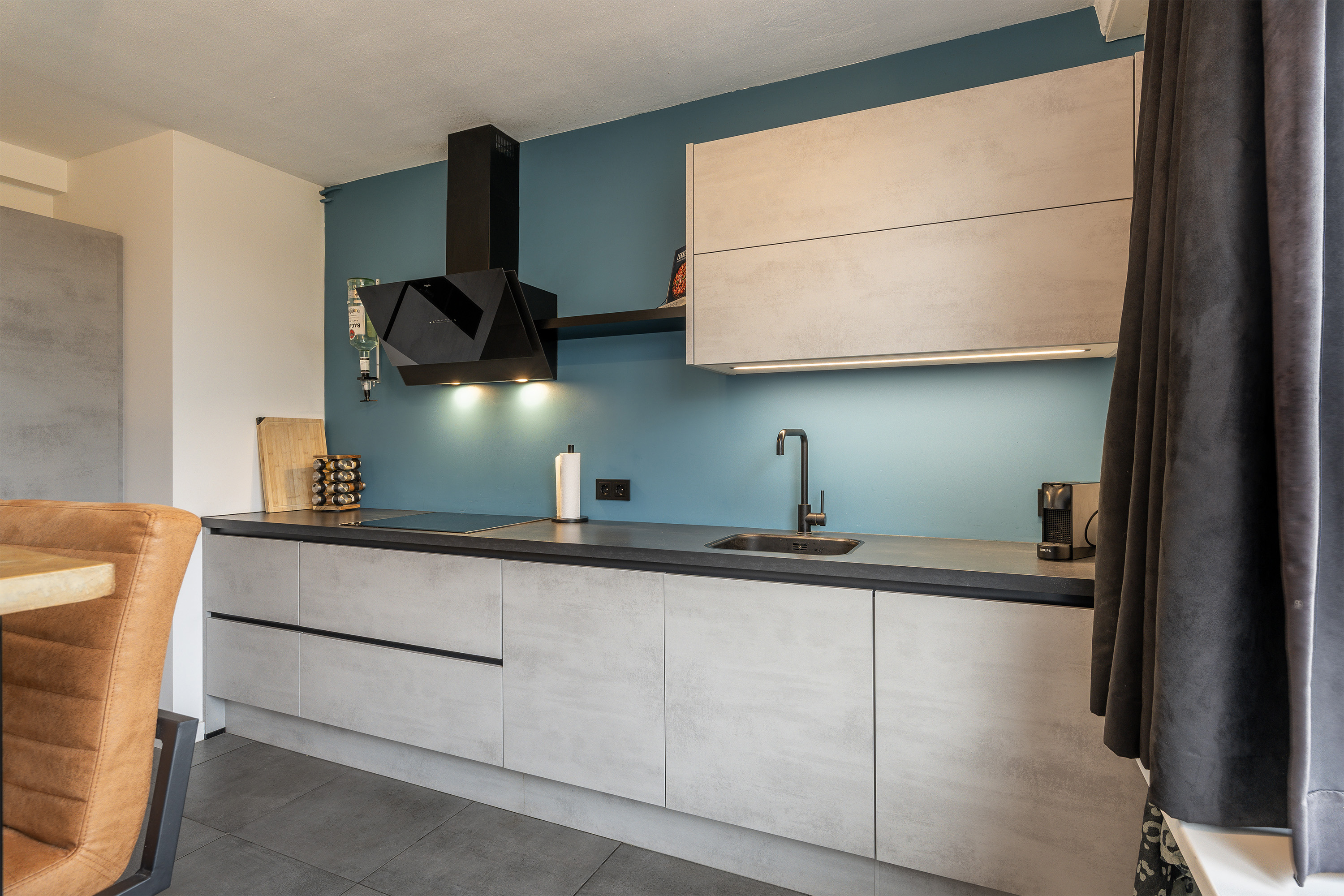 Entree, meterkast in de hal met toegang tot woonkamer en keuken. De aparte keuken bevindt zich aan de voorzijde. De ruime ruimte is voorzien van een modern uitgevoerd keukenblok met grijs front. De keuken is voorzien van diverse kasten en lades en beschikt over de volgende inbouwapparatuur: vaatwasser, koel/vrieskast, inductie kookplaat, afzuigkap en een combimagnetron. Grenzend aan de keuken bevindt zich een bijkeuken, ideaal te gebruiken als provisieruimte. De woonkamer is met ruim 26m2 riant en biedt genoeg mogelijkheden om dit leuk in te richten in een zitgedeelte en een eetgedeelte. De woning heeft op deze verdieping 2 slaapkamers. De slaapkamers zijn respectievelijk ca. 10m2 en ca. 12m2. 1 van deze slaapkamers fungeert als eetkamer in de huidige situatie. In deze ruimte is ook de trap naar de 4e verdieping geplaatst. Via deze kamer is het balkon te bereiken. De tussenhal geeft toegang tot het toilet welke voorzien is van een fonteintje. De badkamer is voorzien van een douche en een wastafel.