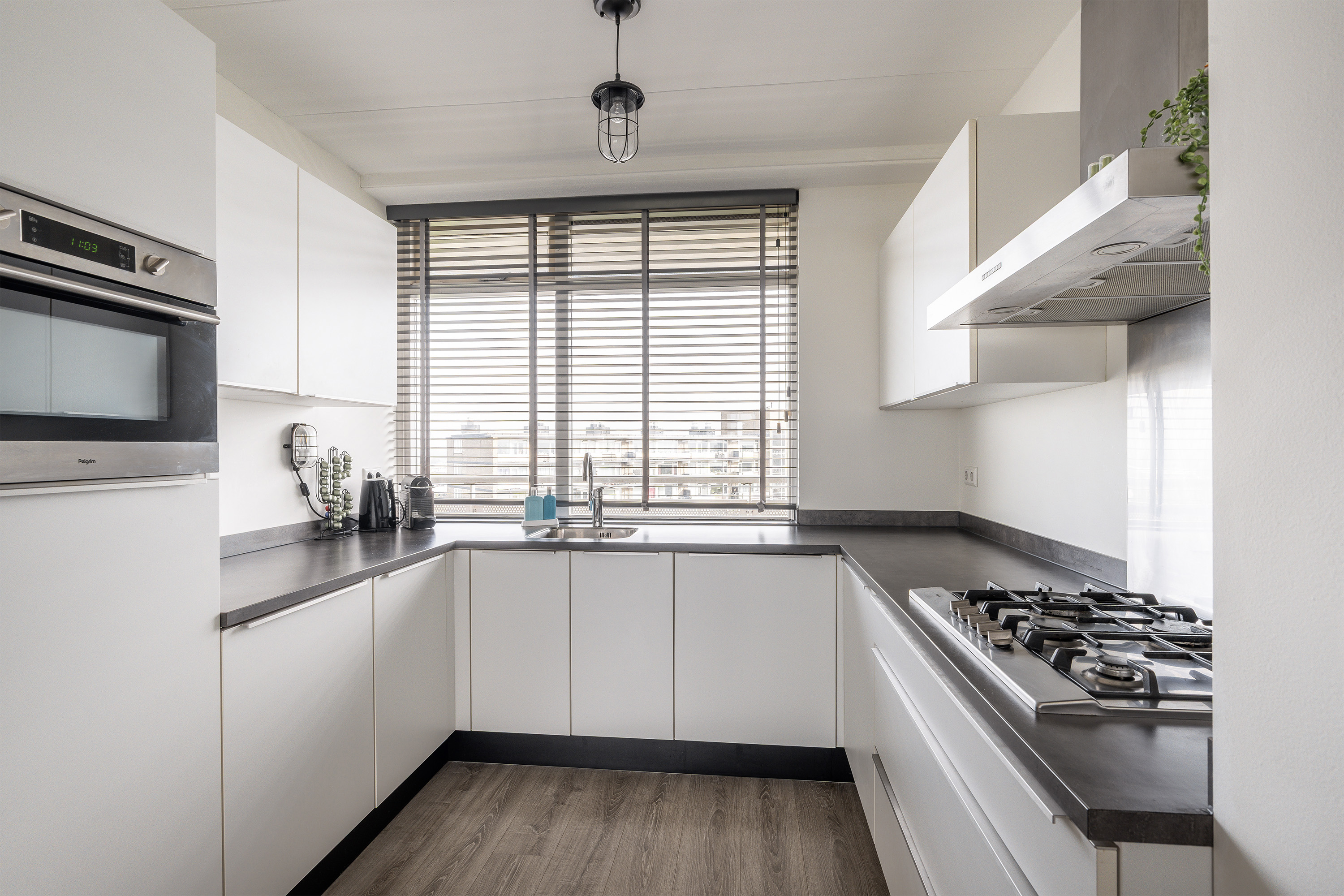Modern uitgevoerd 4 kamer appartement gelegen op de 12e verdieping, tevens bovenste verdieping! Het appartement is voorzien van een moderne keuken en sanitair en is zo te betrekken! Het gebouw heeft meerdere liften en wordt onderhouden door een actieve vereniging van huiseigenaren. Het complex is gelegen in de wijk Groenoord in Schiedam-Noord. De wijk is gelegen nabij natuurgebied Midden Delfland. In de directe omgeving zijn de uitvalsvoorzieningen naar de snelweg, uitstekend openbaar vervoer en een diversiteit aan winkels, scholen en sportfaciliteiten. Winkelcentrum Hof van Spaland bevindt zich op 5 minuten afstand.