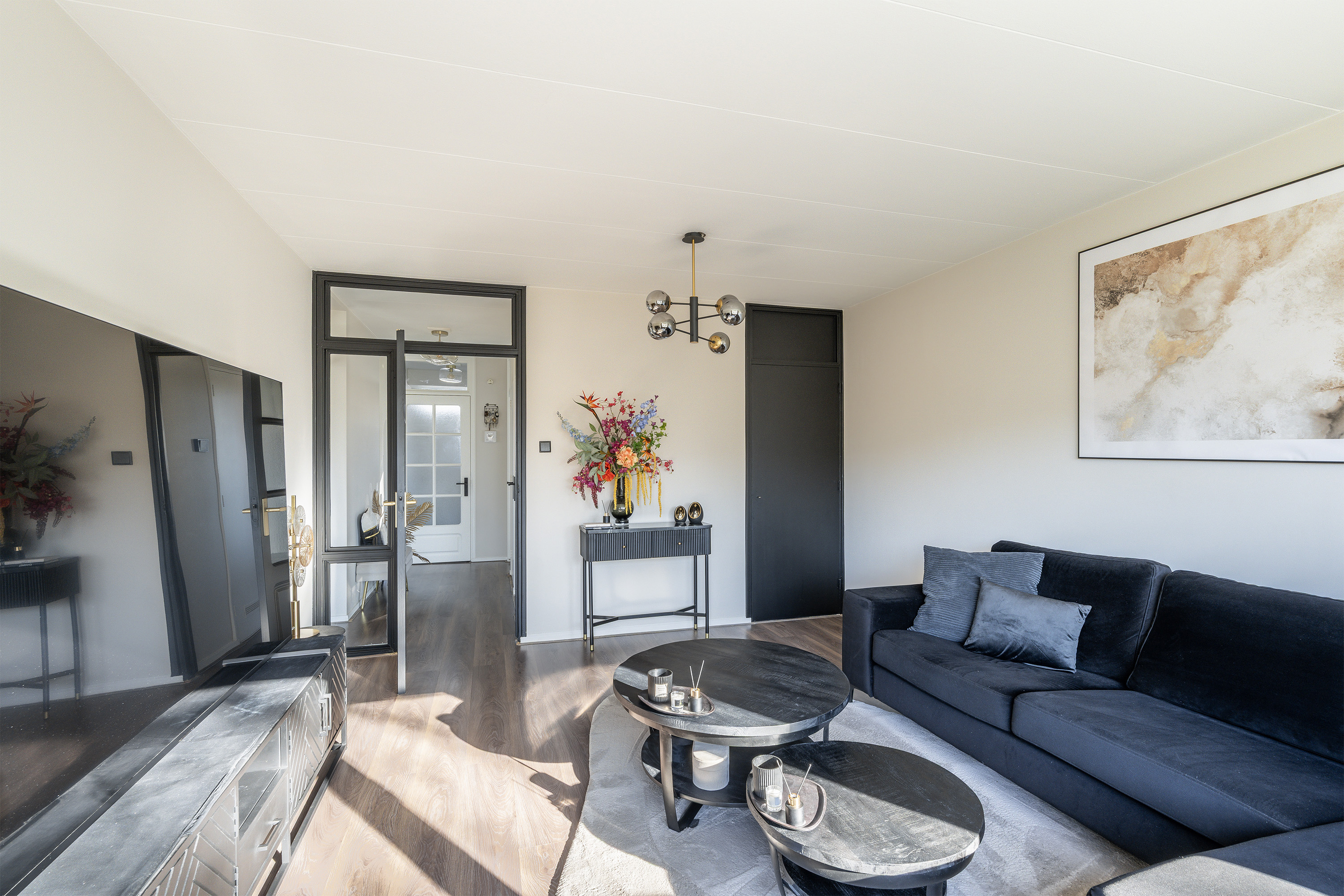 Het appartement heeft een mooie lichtval en prettige ambiance. Aan de voorzijde bevindt zich de uitgebreide keuken met een extra wandblok. Badkamer en toilet zijn ook modern uitgevoerd. De entree, gang en woonkamer zijn voorzien van gestuukte wanden. Ook alle klinken en schakelmateriaal zijn uitgevoerd in de kleur zwart.