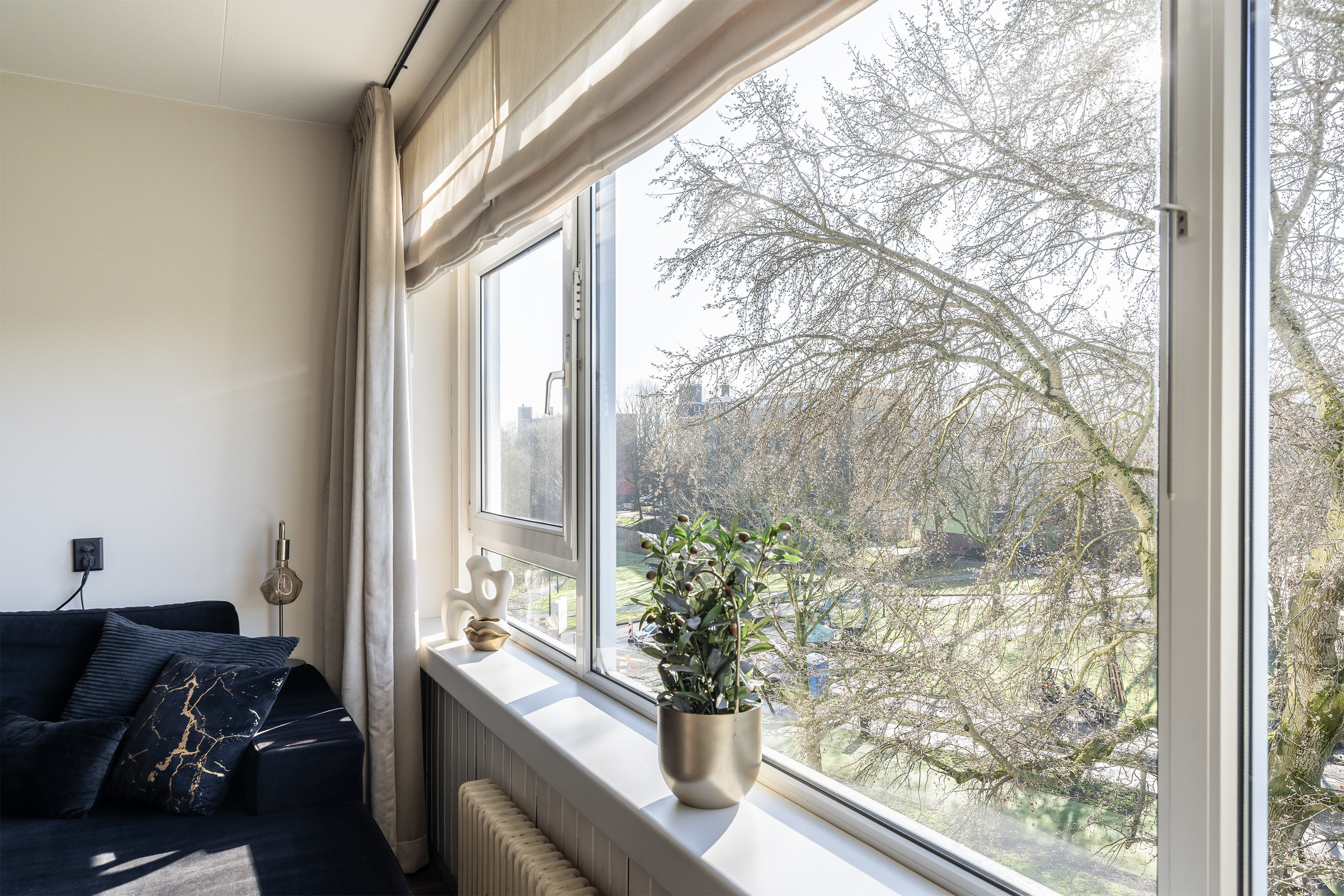 Lovely sunny south-facing balcony of approximately 5m². The balcony offers a beautiful view of the neighborhood and the park.