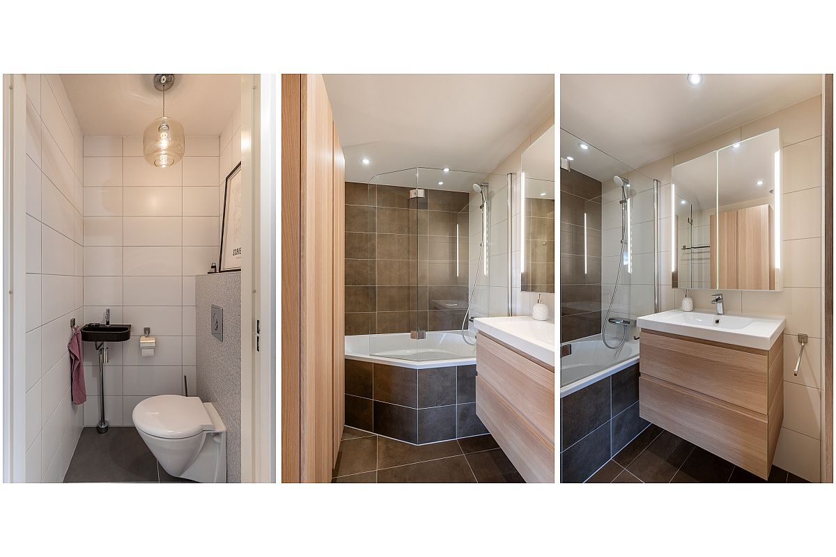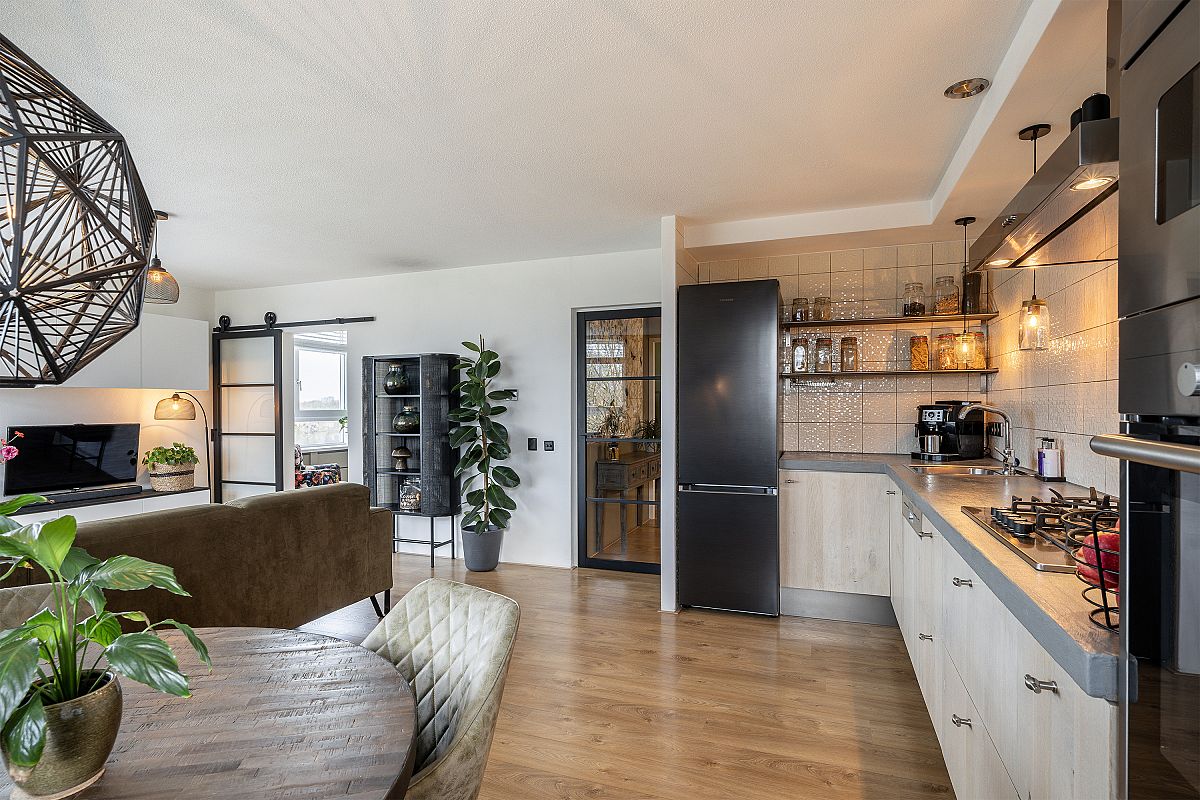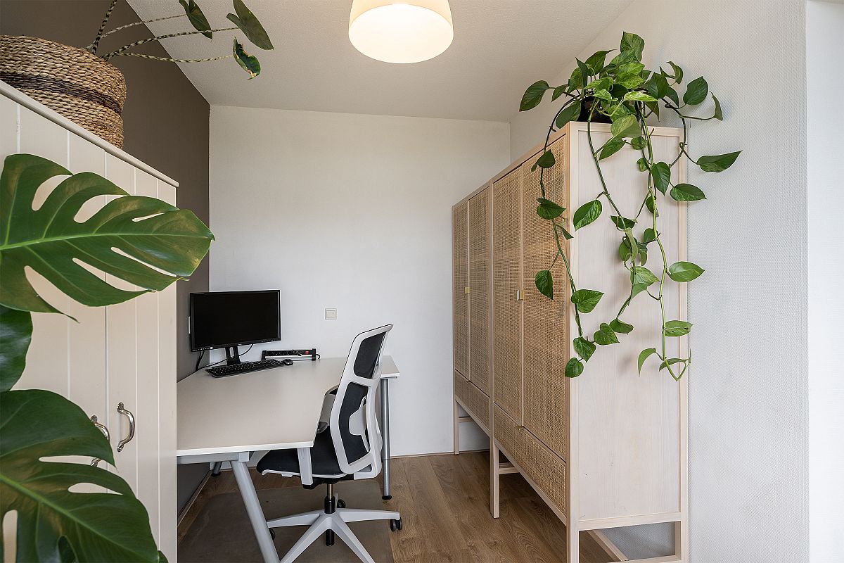 Entree met hal en meterkast. De ruime woonkamer met open keuken van tezamen ruim ca. 35m² heeft veel ramen en licht door de hoekligging en biedt een prachtig uitzicht over het natuurgebied. De open keuken is voorzien van een praktische indeling en beschikt over diverse inbouwapparatuur, waaronder een vaatwasser, koelkast, oven en gaskookplaat. Vanuit de woonkamer is het balkon te bereiken, dat heerlijk op het zonnige zuiden is gelegen. De woning heeft drie slaapkamers. De kamer die gebruikt wordt als werkkamer kan bij de woonkamer worden getrokken om meer ruimte in de woonkamer te creëren. Ook kan deze kamer als extra slaapkamer dienen. De badkamer is voorzien van een douche en wastafelmeubel. Het separate toilet is modern uitgevoerd. In de CV ruimte is voldoende ruimte voor de wasmachine en droger.