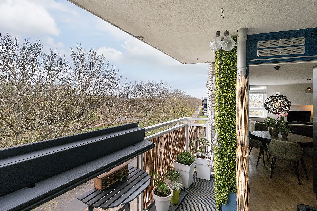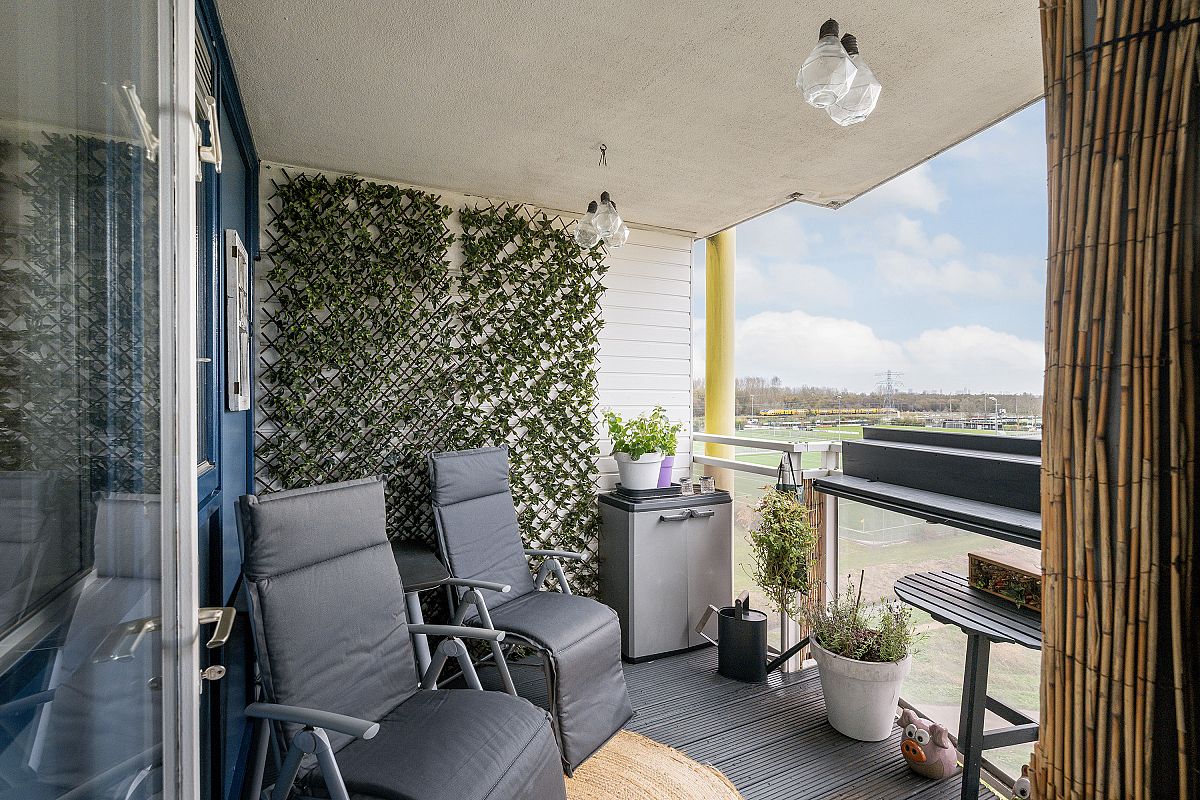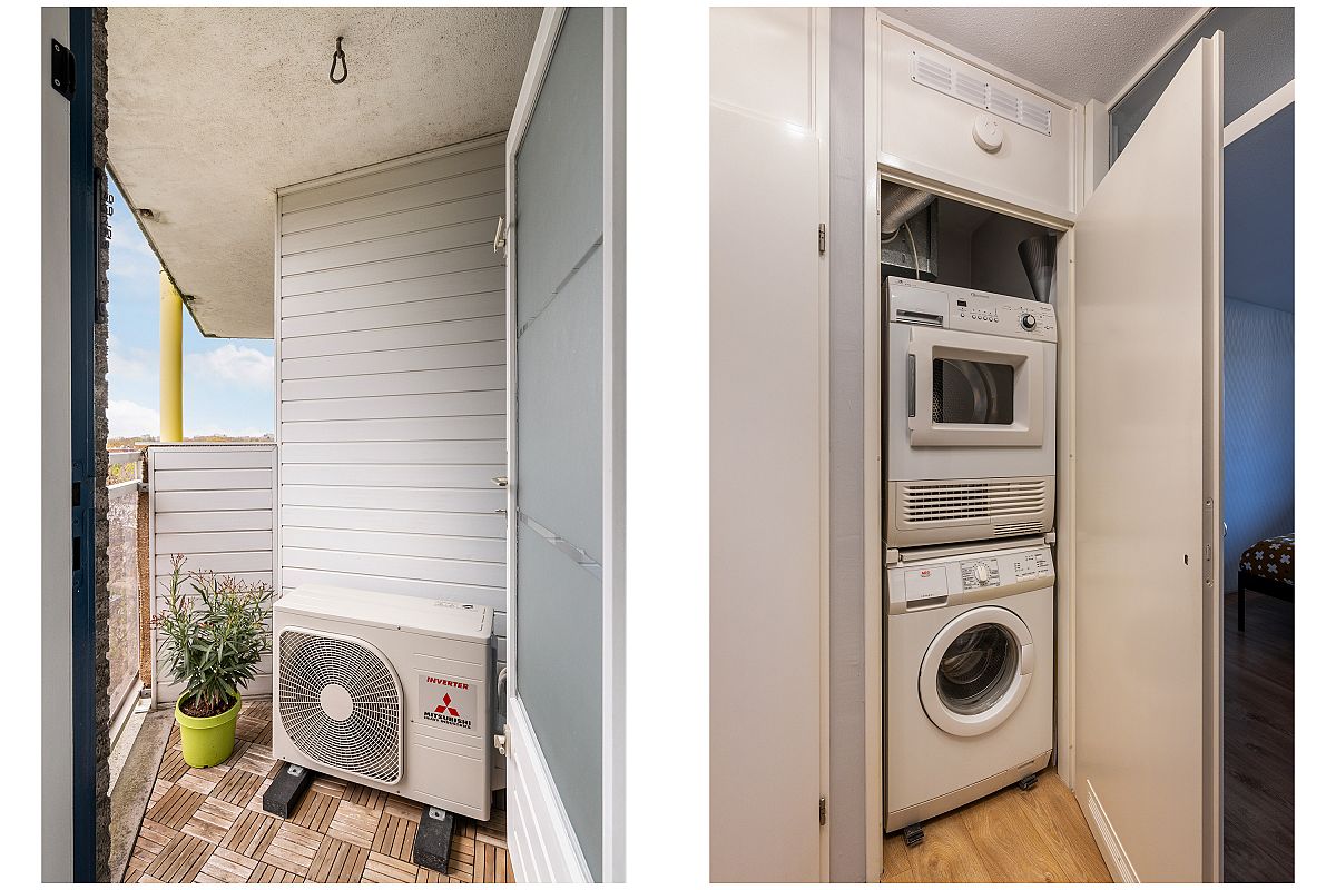 Zonnig balkon op het zuiden van ca. 8m², met een prachtig vrij uitzicht over het natuurgebied. Het kleine balkon dat gelegen is op het westen wordt gebruikt voor de vaste airco unit.