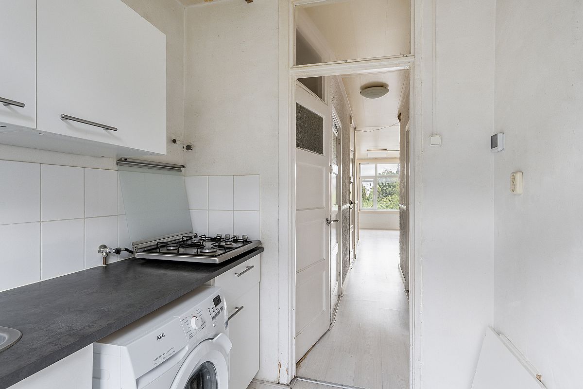 Hal, kast, toilet, riante woonkamer ruim 30m2. De keuken is voorzien van eenvoudig keukenblok aangevuld met losse apparatuur. Vanuit de keuken is er toegang tot een klein balkon. De badkamer is eenvoudig uitgevoerd en voorzien van een douche/ligbad en een wastafel. Slaapkamer van bijna 11m2.