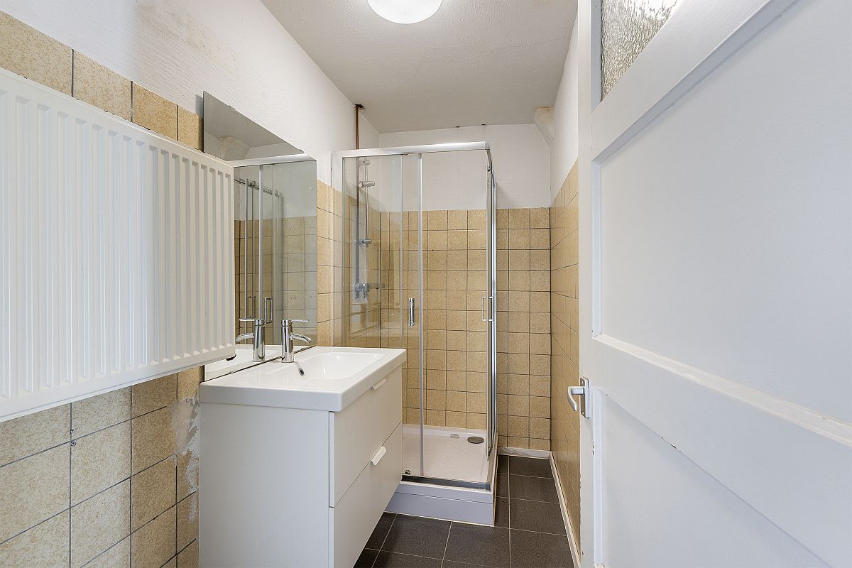 Overloop, toegang tot vliering, 2 slaapkamers van respectievelijk ca. 9.2m2 en ca. 4.4m2 (met beide toegang tot het balkon). De badkamer is net uitgevoerd en voorzien van een douchehoek en een wastafelmeubel.