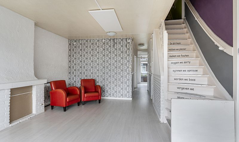 Gedeelde opgang naar eigen voordeur op de eerste verdieping.