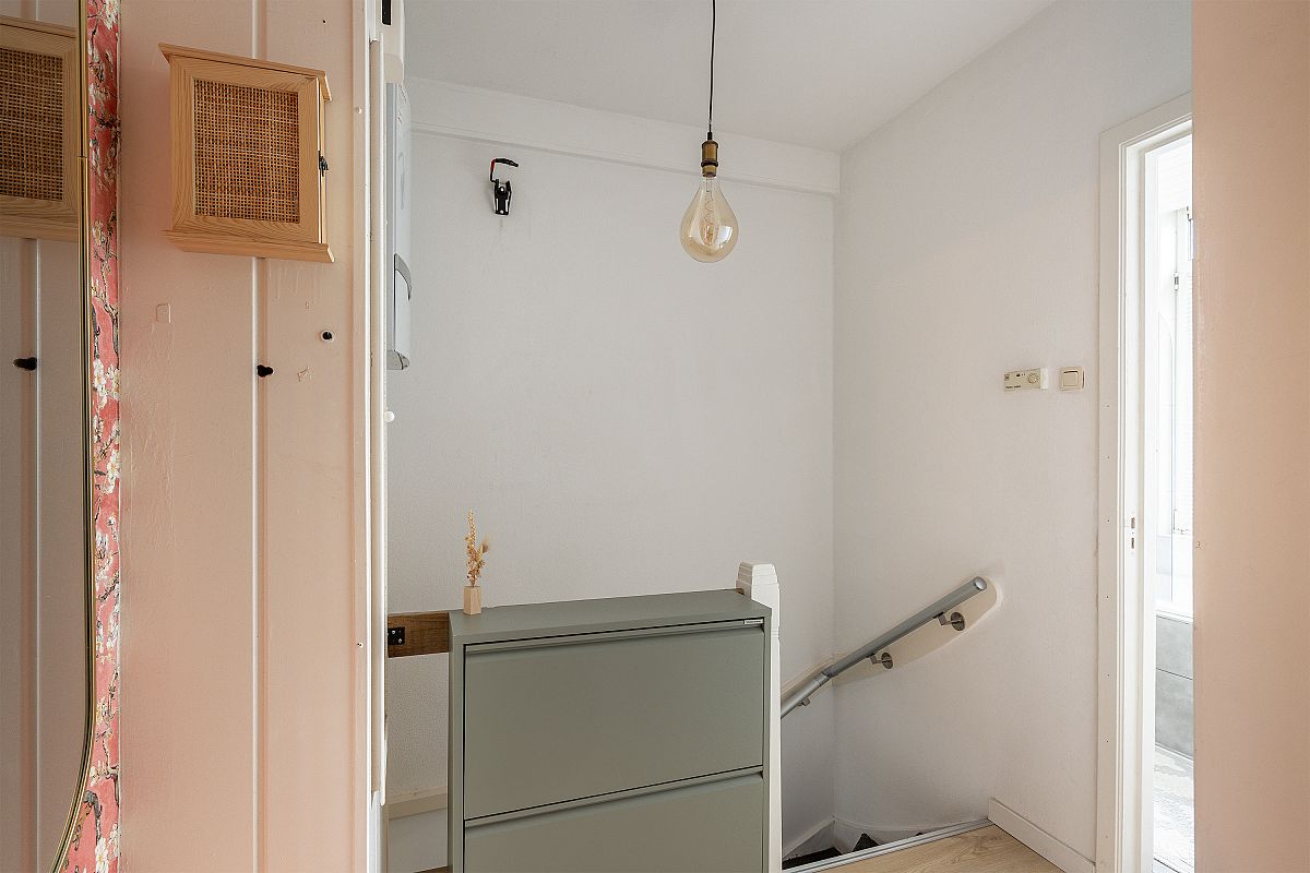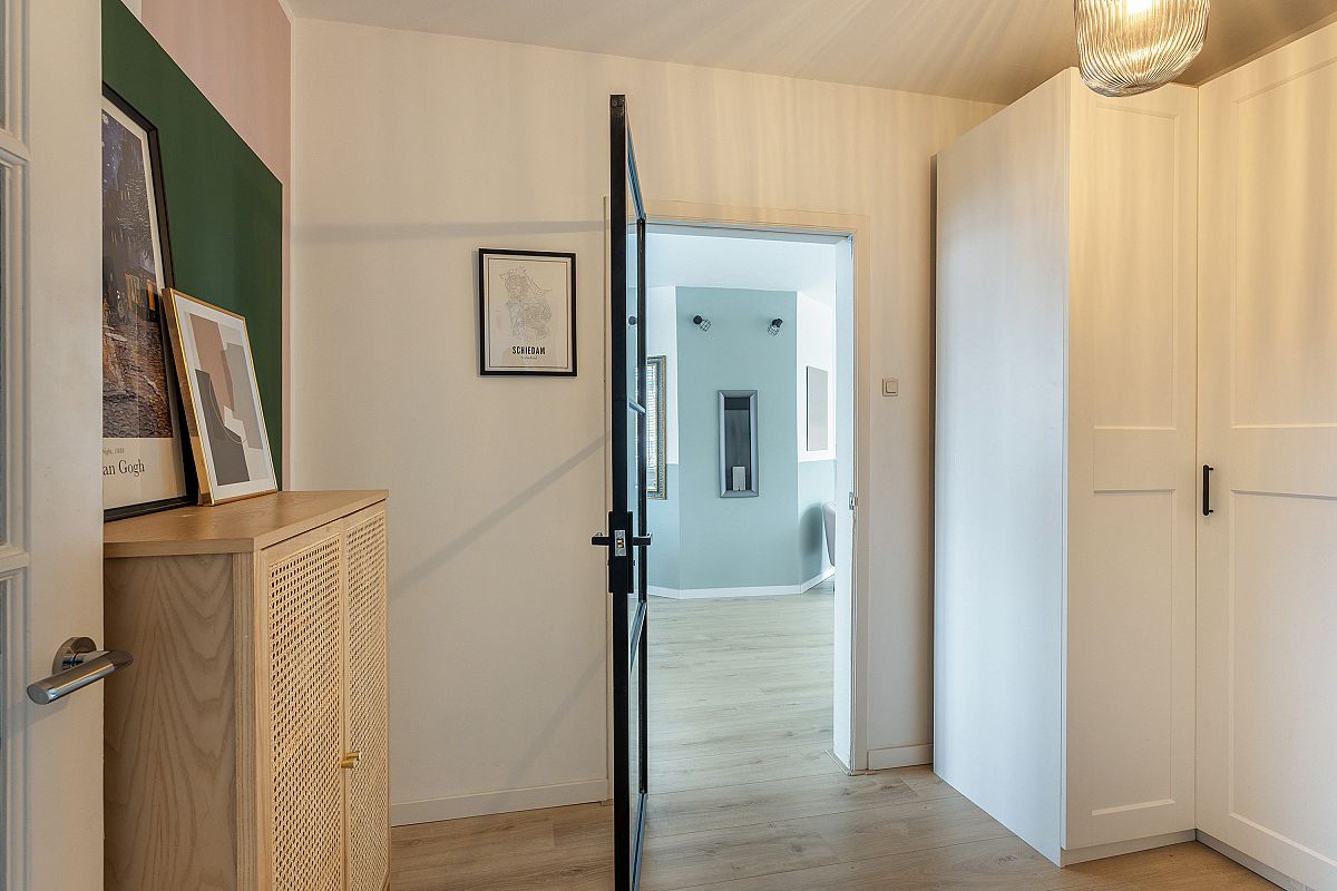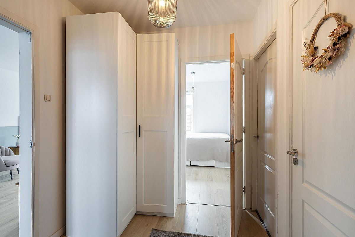 ruime hal van ca. 7m2, toilet met een handwasbakje. Sfeervolle ruime doorzon woonkamer met een half open keuken van totaal ca. 40m2. De woonkamer heeft een strakke afwerking, mooie lichtinval en doordoor een prettige ambiance. De keuken is voorzien van een oven, inductie kookplaat, vaatwasser, afzuigkap en een losse koel/vriescombinatie. Toegang tot het balkon. Moderne badkamer voorzien van een ligbad/douchecombinatie, wastafelmeubel en mechanische ventilatie. Voorslaapkamer I van ca. 8m2. Voorslaapkamer II van ca. 10,4m2 met een inbouwkast. In de overloop bevindt zich de cv ketel opstellen en de meterkast.