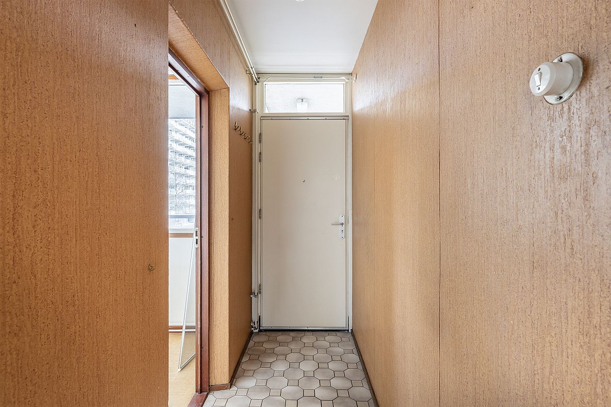 Entree appartement, tochtportaal. Ruime hal meterkast. Woonkeuken met eenvoudig, maar net keukenblok. Portaal met toegang tot geheel betegeld toilet en badkamer. Ruime woonkamer van ca. 29m² met toegang tot het balkon. Het balkon is gelegen op het Westen van ca. 14m². Vanaf het balkon is er vrij uitzicht. Slaapkamer I van ca. 7m². Slaapkamer II van ca. 9m². Slaapkamer III van ca. 12m².