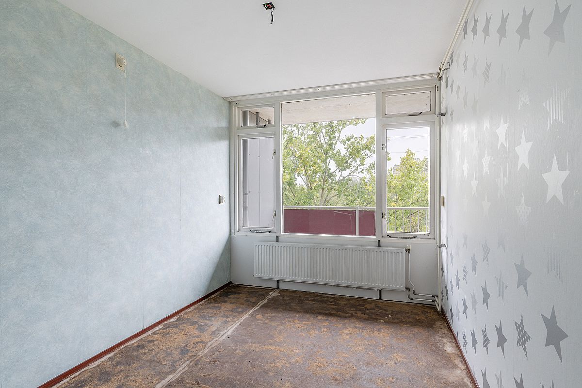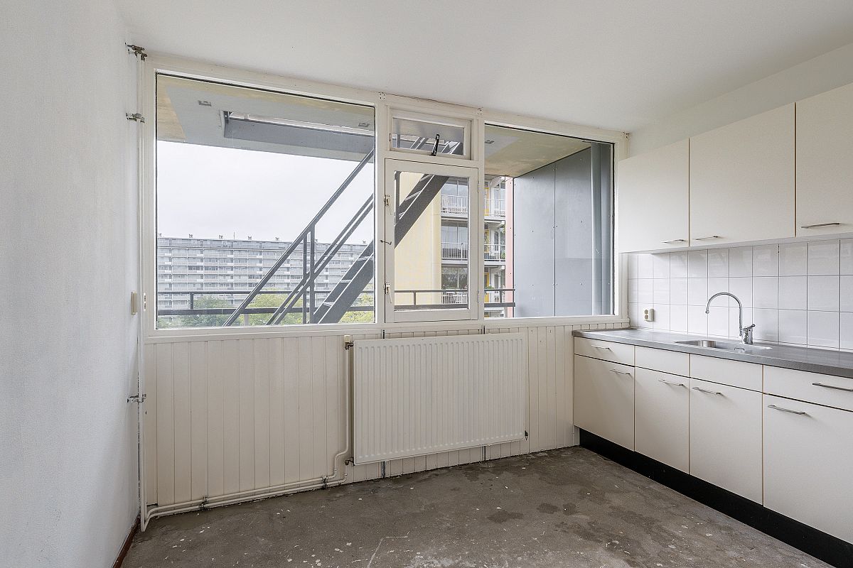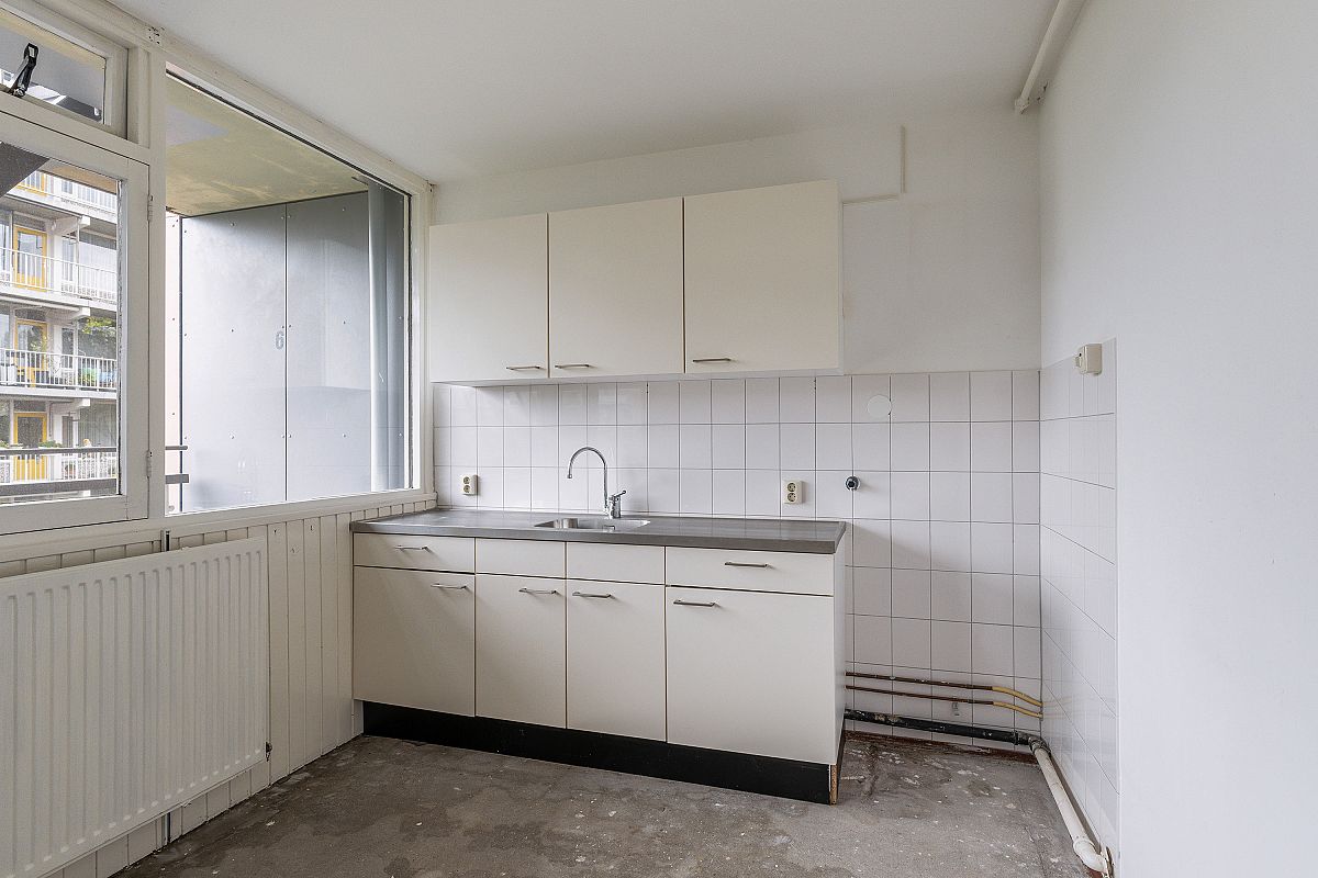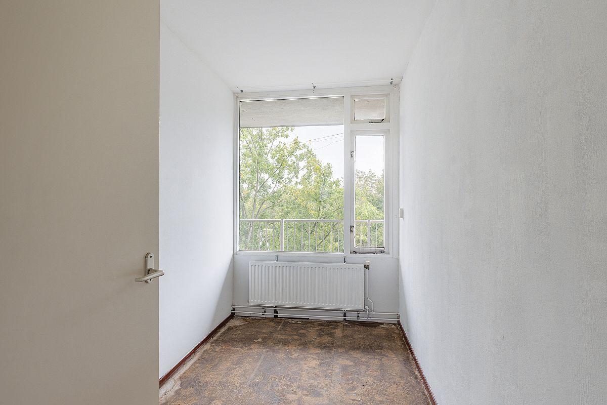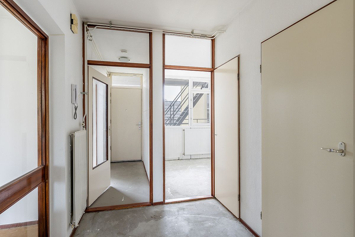 Entree appartement, tochtportaal. Ruime hal meterkast. Woonkeuken met eenvoudig, maar net keukenblok. Portaal met toegang tot geheel betegeld toilet en badkamer. Ruime woonkamer van ca. 29m² met toegang tot het balkon. Het balkon is gelegen op het Westen van ca. 14m². Vanaf het balkon is er vrij uitzicht. Slaapkamer I van ca. 7m². Slaapkamer II van ca. 9m². Slaapkamer III van ca. 12m².