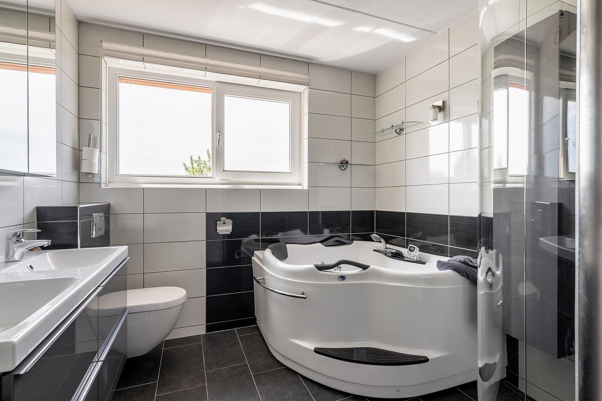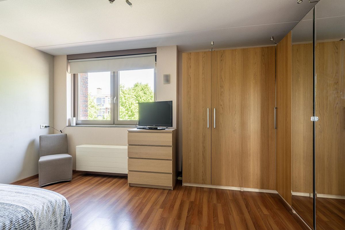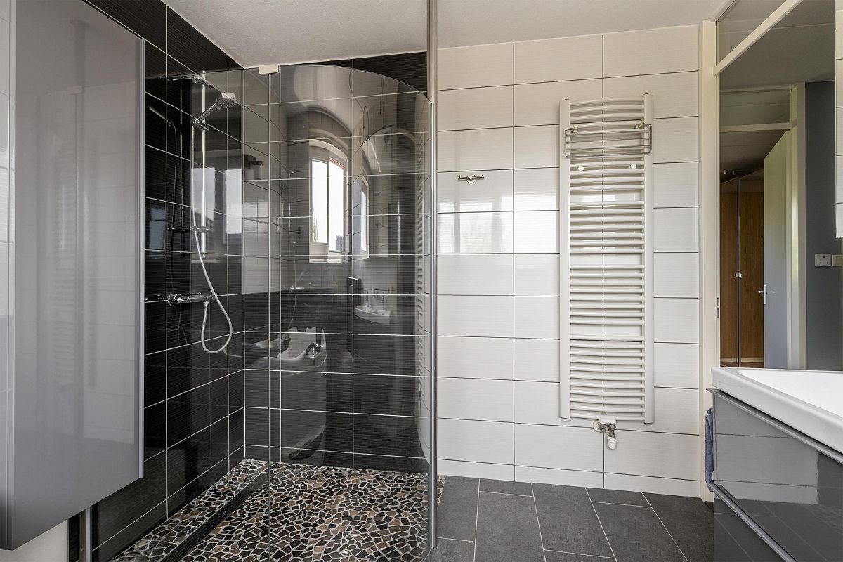 Een overloop, trapopgang naar de 3e verdieping, een aparte bergruimte met daarin de cv-ketel opgesteld. De hoofdslaapkamer is riant van bijna 19m2. Hier kunnen eventueel weer 2 kamer gerealiseerd worden. De badkamer (9m2) is voorzien van een riante inloopdouche, een wastafelmeubel met dubbele wastafels, badkamerkastjes met spiegeldeuren, een handdoekenkast, 2de toilet, handdoekradiator en een whirlpool hoekbad.