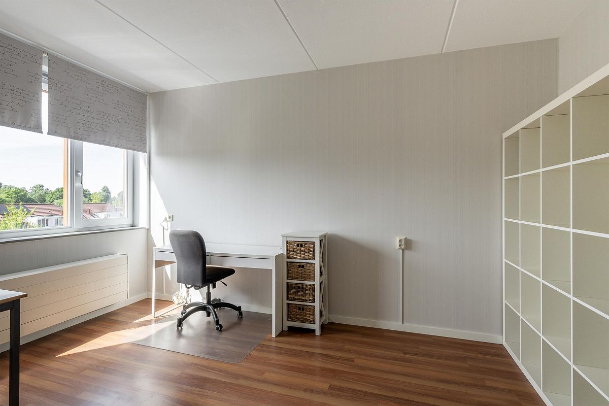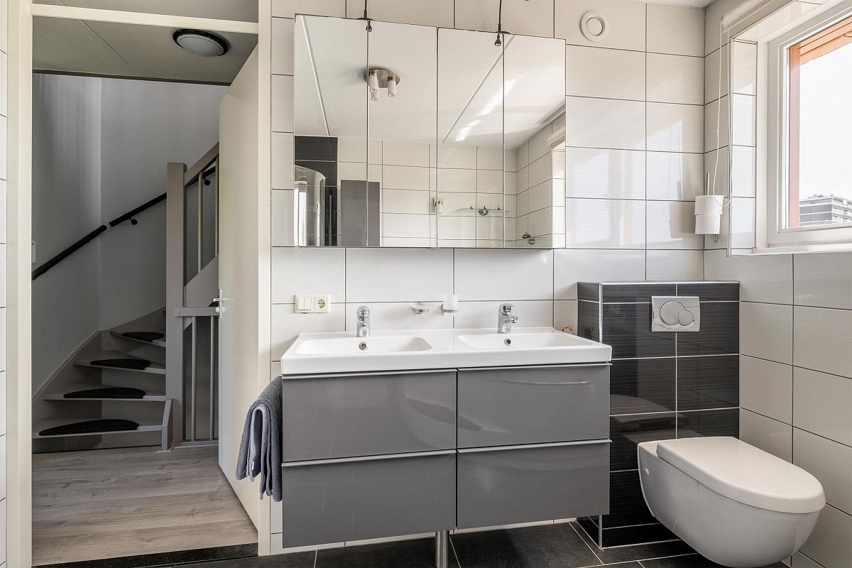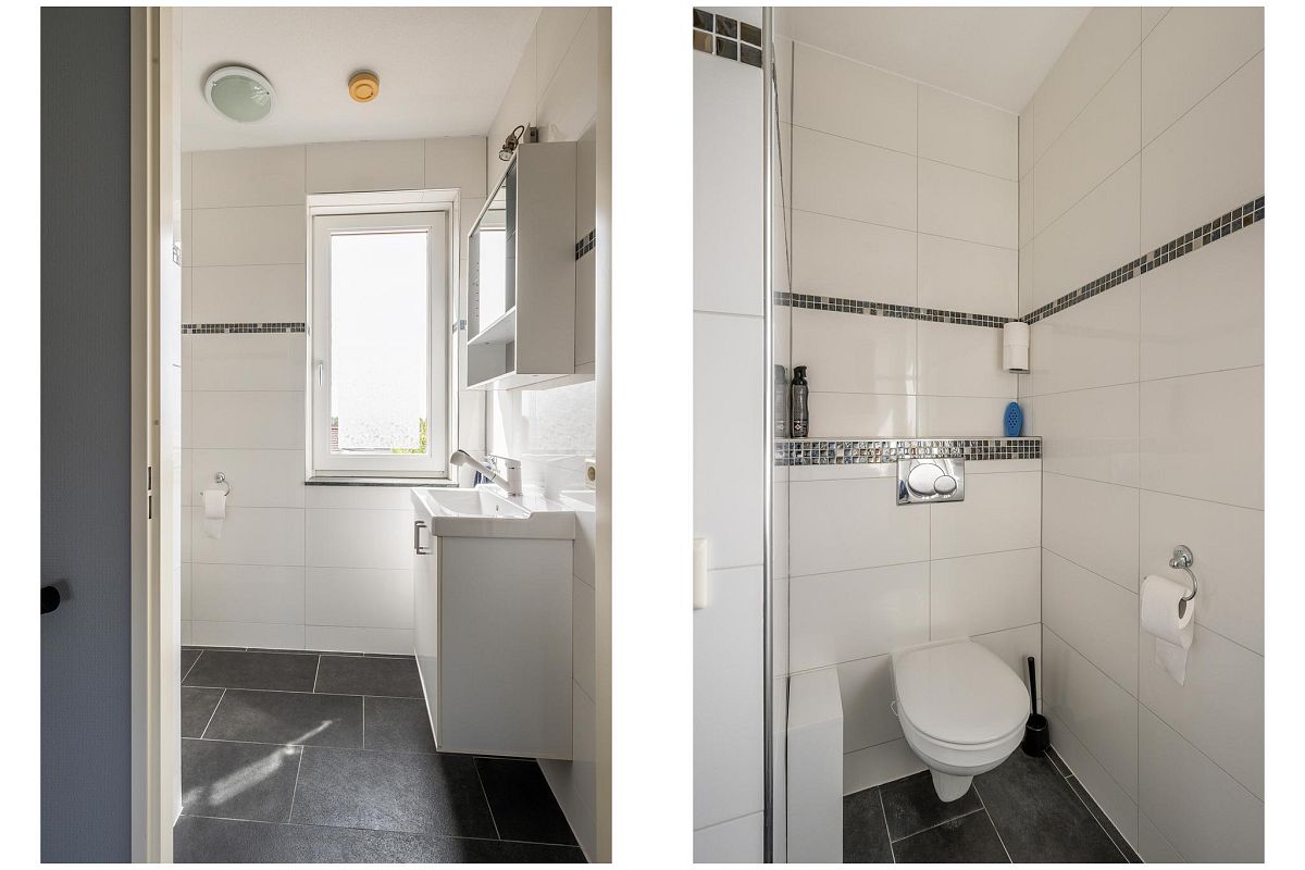 Een ruime overloop, 3e toilet met een klein wartafelmeubel en een opbergkastje met spiegel. Deze verdieping beschikt over 2 ruime slaapkamers van respectievelijk ca. 12m2 en ca. 18m2.