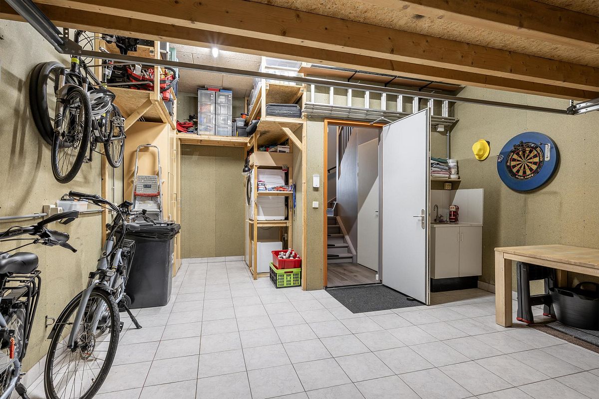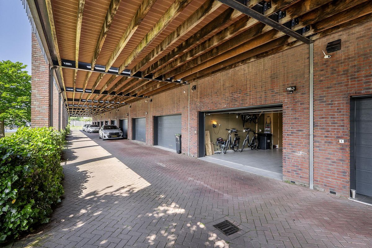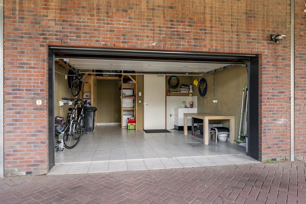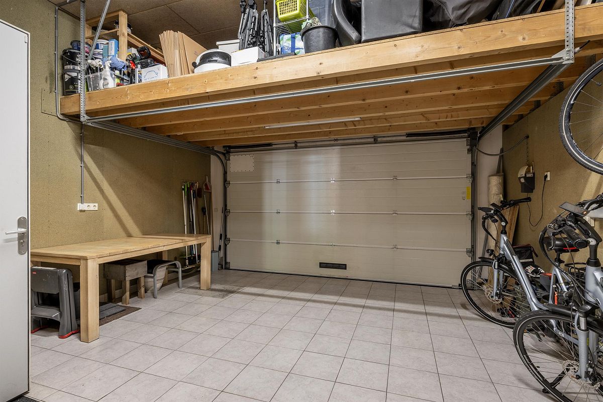 Ruime inpandige garage op de begane grond van ca. 29m2 met een vliering. De garage is van binnenuit te bereiken en middels een elektrische roldeur is het achtergelegen terrein te bereiken. Voor de garage is er eveneens plek om een auto te parkeren.