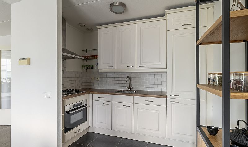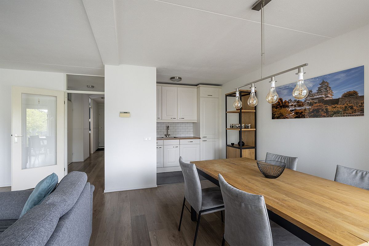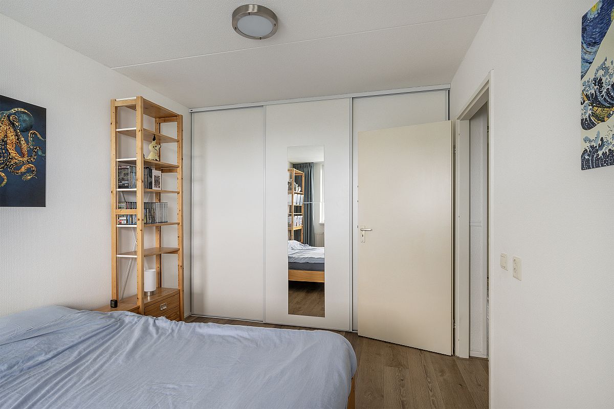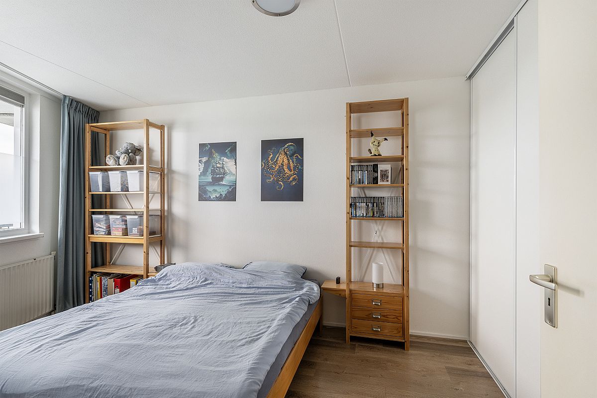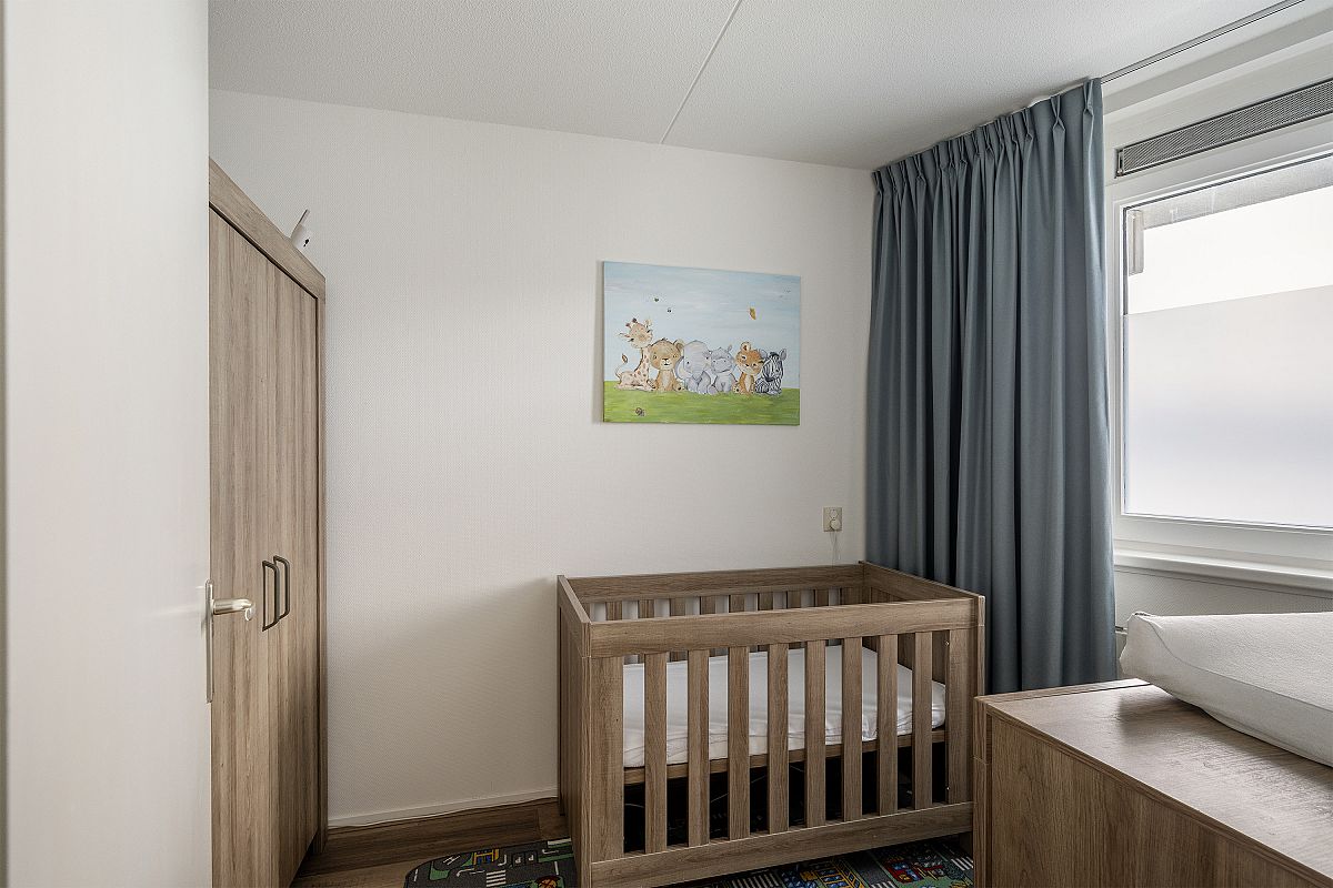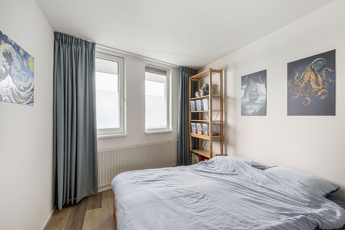 Entree, ruime gang welke toegang geeft tot alle vertrekken. Beide slaapkamers liggen aan de galerijzijde en zijn respectievelijk 11.1m2 en 6.6m2. De hoofdslaapkamer is voorzien van een schuifkastenwand. Separaat toilet met fonteintje. Inpandige berging welke fungeert als natte ruimte, maar ook gebruikt kan worden als extra bergruimte. De ruime badkamer is net uitgevoerd en voorzien van een douche/ligbad, radiator en een wastafel. Ruime woonkamer met open keuken van tezamen ruim 35m2. De keuken is voorzien van een L-vormige keukenopstelling voorzien van de volgende inbouwapparatuur: gaskookplaat, combi-oven, afzuigkap, vaatwasser en een koel/vrieskast.. Vanuit de woonkamer is er tevens het riante balkon bereikbaar.