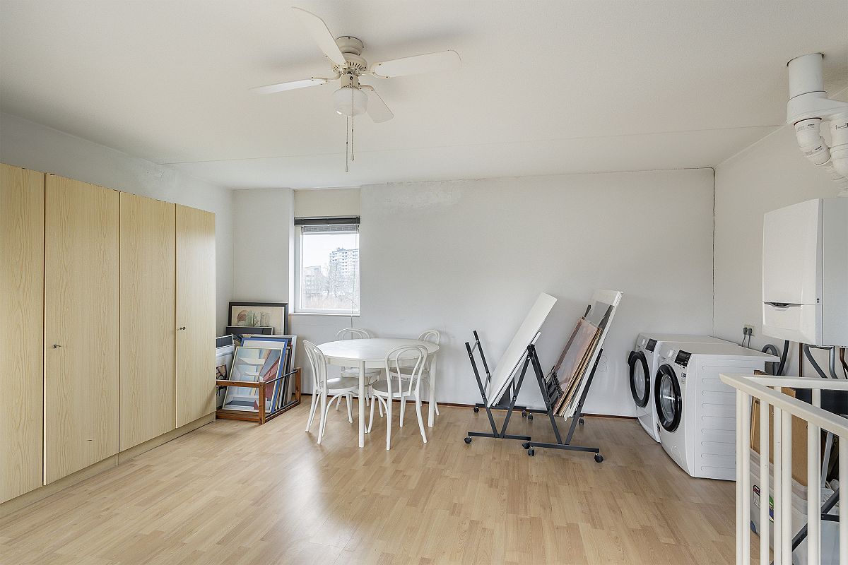 Open zolder verdieping/slaapkamer van ca. 27m2 Op deze verdieping bevinden zich de wasmachineaansluiting en de CV opstelling. Er is tevens toegang tot het terras op het zuidwesten. Het terras is meer dan 18m2.
