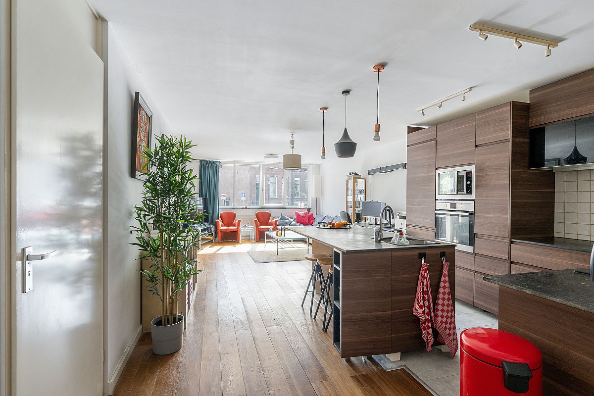 Entree met voorportaal, inpandige bergruimte met wasmachine aansluiting. Meterkast. Toilet met fonteintje. Bergkast met opstelling cv combi ketel en mv-unit. Mooie lichte ruime woonkamer met een luxe open keuken van totaal ca. 31m2. De woonkamer is voorzien van een mooie parketvloer en geeft toegang naar het balkon. De keuken is voorzien van een kookeiland met bar, een 5 pits gaskookplaat, design afzuigkap, koelkast, vriezer, oven, magnetron en een vaatwasser. Grote slaapkamer van ca.12 m2 voorzien een grote vaste kast. De moderne luxe badkamer is voorzien van een ligbad/douche combinatie, wastafelmeubel, radiator en heeft mechanische ventilatie.