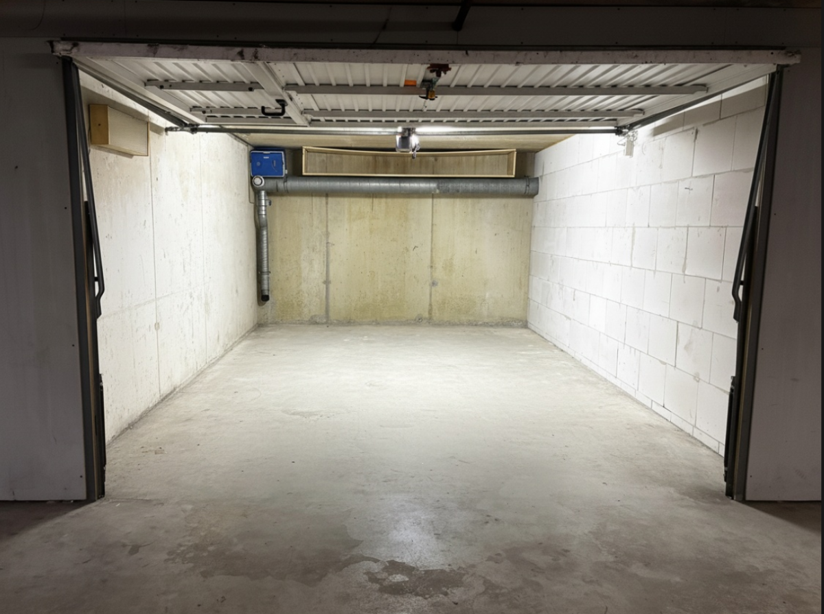 Ruime garagebox van ca. 5,4m x 3,44m voorzien van elektra en met een loopdeur. De roldeur kan elektrisch worden bediend.