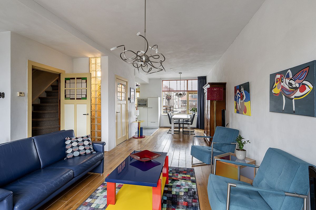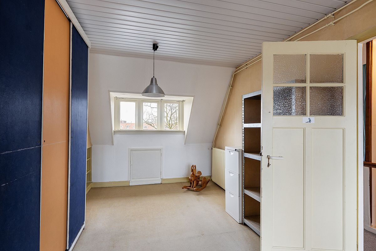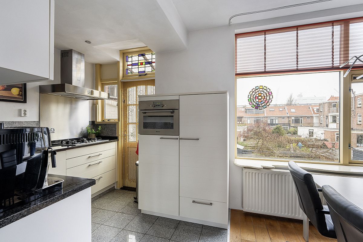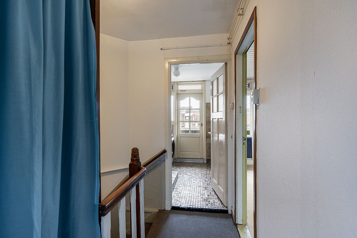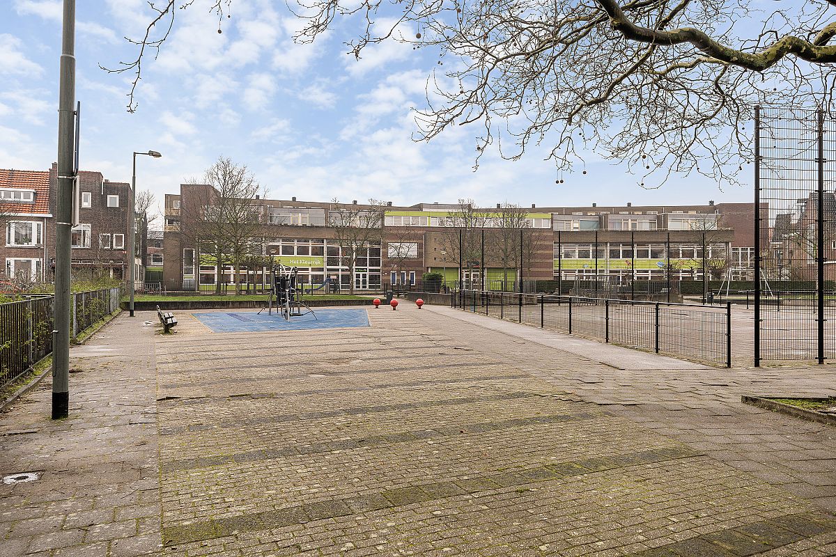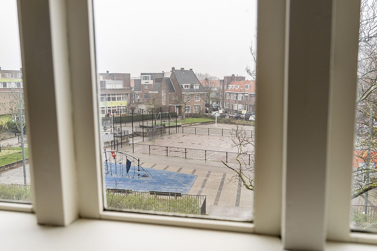 The living room with semi-open kitchen (approx. 41 m² in total) is located on the first floor, providing privacy, excellent natural light, and a wide, open view over the large square in front of the property. Situated in the popular 1930s Schiedam-West neighborhood, the location is excellent with metro station Troelstralaan, a supermarket, and various local shops nearby. Free parking is available in front of the house. The historic centre of Schiedam, with all amenities, is within a 5-minute bike ride.