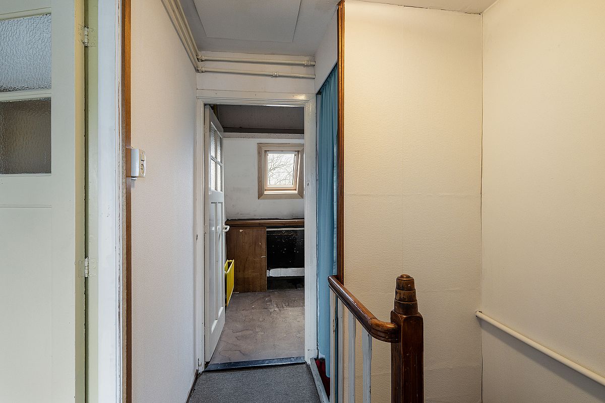 Overloop, kastruimte met opstelling cv ketel. Ruime slaapkamer van ca. 22,8m2 met toegang naar het balkon via openslaande deuren. Deze kamer is eenvoudig terug te brengen naar 2 grote slaapkamers. Voorkamer van ca. 3,5m2. De 2e badkamer/wasruimte 2,71m x 1,89m (eenvoudige uitvoering) is voorzien van een douche, wastafel en wasmachine aansluiting. Toegang naar het balkon.
