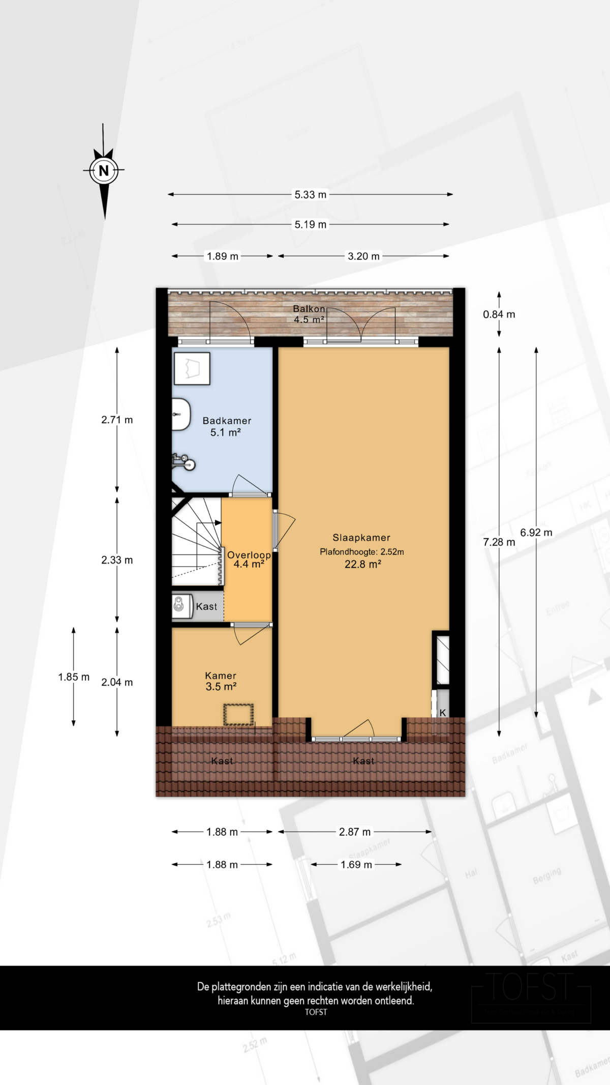 Deze informatie is door ons met de nodige zorgvuldigheid samengesteld. Onzerzijds wordt echter geen enkele aansprakelijkheid aanvaard voor enige onvolledigheid, onjuistheid of anderszins, dan wel de gevolgen daarvan. Alle opgegeven maten en oppervlakten zijn indicatief. U kunt indien gewenst de woning voor het tekenen van de koopakte zelf inmeten en controleren.