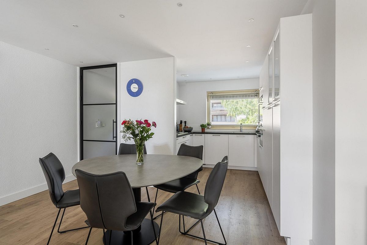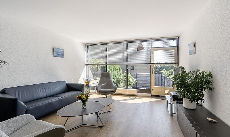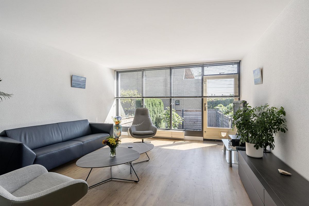 Entree, hal, meterkast. Via een stoere zwart metalen glazen deur bereik je de royale woonkamer inclusief keuken van totaal ca. 46,6m2. Deze ruimte is in 2021 vernieuwd met een nieuwe pvc vloer, verlaagd plafond in de keuken met inbouw ledverlichting en met nieuw gesausde wanden en gestuukt plafond. Vanuit de woonkamer is de tuin te bereiken middels een trap. De woonkamer heeft een grote pui wat een mooie lichtinval geeft. De keuken (2015) heeft een moderne uitstraling en is voorzien van een stoomoven, combi magnetron, vaatwasser, afzuigkap, granietblad, carrousel en apothekerskast.