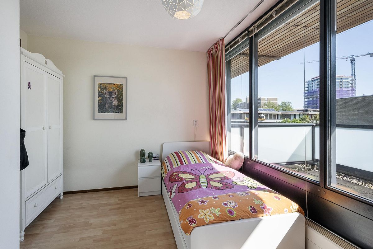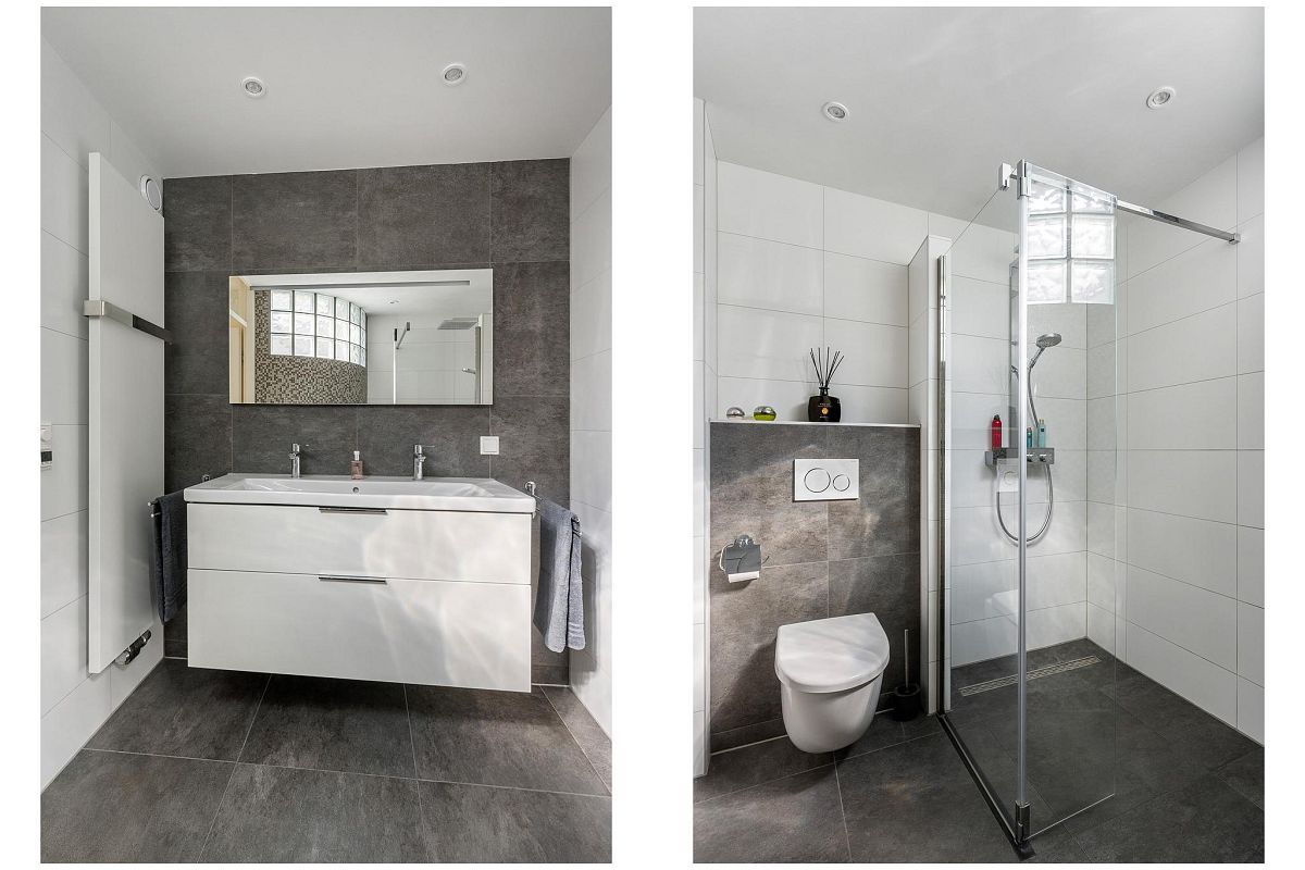 Overloop, luxe badkamer (november 2019) voorzien van een lichtkoepel, dubbel wastafelmeubel, vrijhangend toilet, vloerverwarming, wandradiator en inloopdouche. Het verlaagde plafond is gestuukt en heeft ingebouwde led verlichting. Voorslaapkamer van ca.12,9 m2. Achterslaapkamer van ca. 11,5m2 met toegang naar het dakterras.