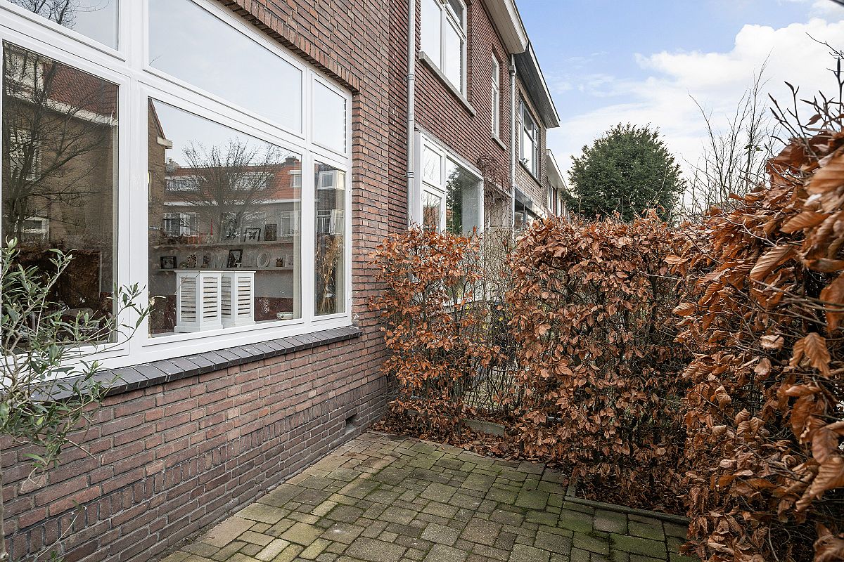 Ruime achtertuin van ca. 7.00 meter diep en ca. 6.75 meter breed gelegen op het zuiden. Vanuit de woning kom je eerst op een terras, welke via een paar treden toegang geeft tot de tuin. In de tuin staat een houten berging en verder is er een zij ingang die toegang geeft tot een afgesloten poort richting de straat. Ook de voortuin is erg praktisch voor een extra zitje of fietsen en het zorgt voor een fijne scheiding met het trottoir.