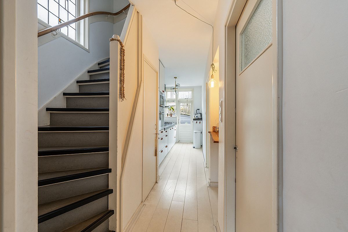Entree, tochtportaal met garderobe ruimte en de meterkast, gang, toilet met zwevend soft close closet en fonteintje, trapopgang naar de 1e verdieping en trapkast met opstelling CV. Keuken met een corian aanrechtblad en voorzien van de volgende merk (Bosch en Siemens) inbouwapparatuur: afzuigkap, koel/vrieskast, vaatwasser en een 5 pits gaskookplaat. Vanuit de keuken en woonkamer is er toegang tot de tuin. Riante woonkamer van ca. 32m2 voorzien van houten vloerdelen en gestuukte wanden en plafond. De woonkamer is voorzien van een vast kast en is door de ruimte makkelijk in te delen in een eetgedeelte en een woongedeelte welke allebei vanuit de gang te bereiken zijn. De openslaande deuren bieden toegang tot de achtertuin.