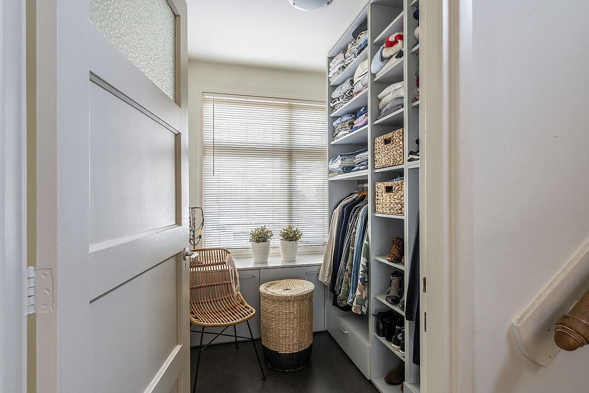 Overloop, trapopgang naar de 2e verdieping. Riante hoofdslaapkamer van bijna 15m2 met een vaste kast en openslaande deuren naar het balkon. Ruime slaapkamer van ca. 14m2 met vaste kast gelegen aan de voorzijde. Werkkamer/inloopkast van ca. 5m2. Badkamer voorzien van mechanische ventilatie, 2e toilet, ruime doucheruimte met glazen deur, ligbad, wastafelmeubel met verwarmde spiegel en tevens toegang tot het balkon.