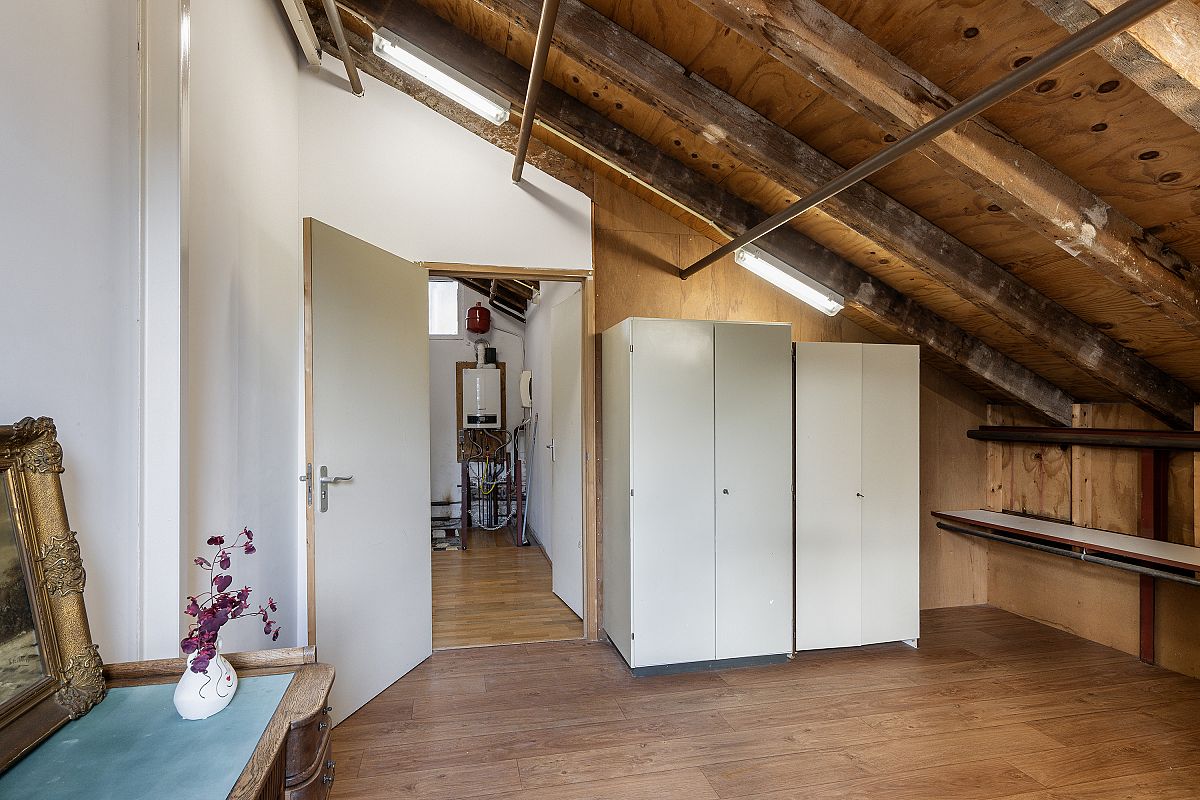 De garage is op de begane grond maar liefst 67m2 groot. Op de eerste verdieping is er nog ca. 34m2 aan gebruiksoppervlakte ingedeeld in een overloop, voorkamer en achterkamer.