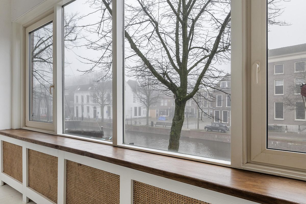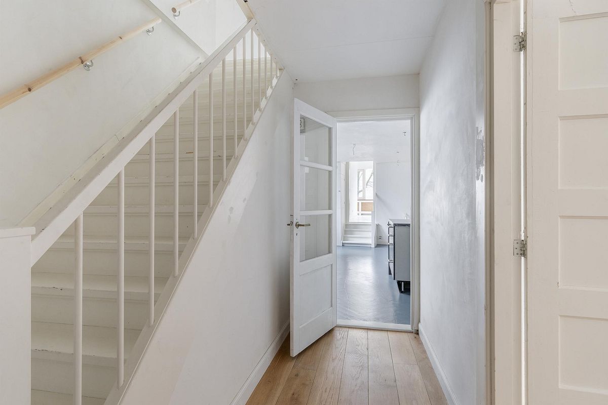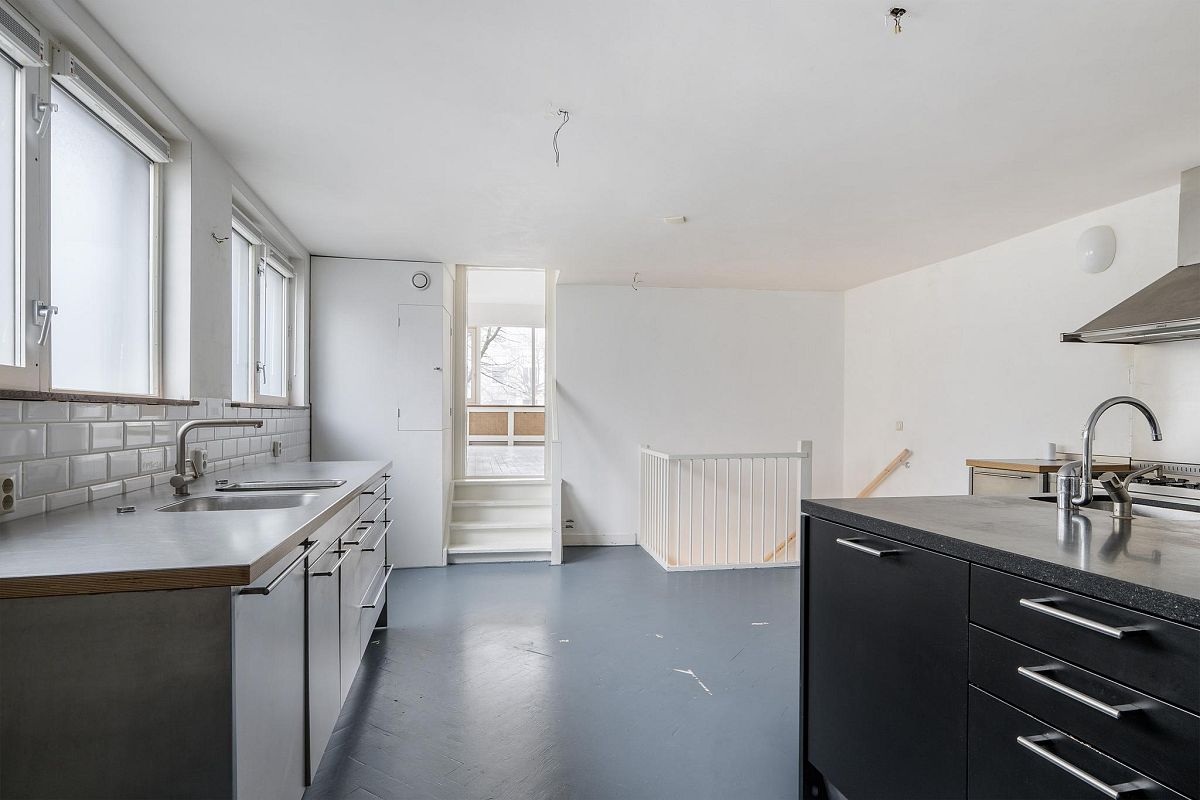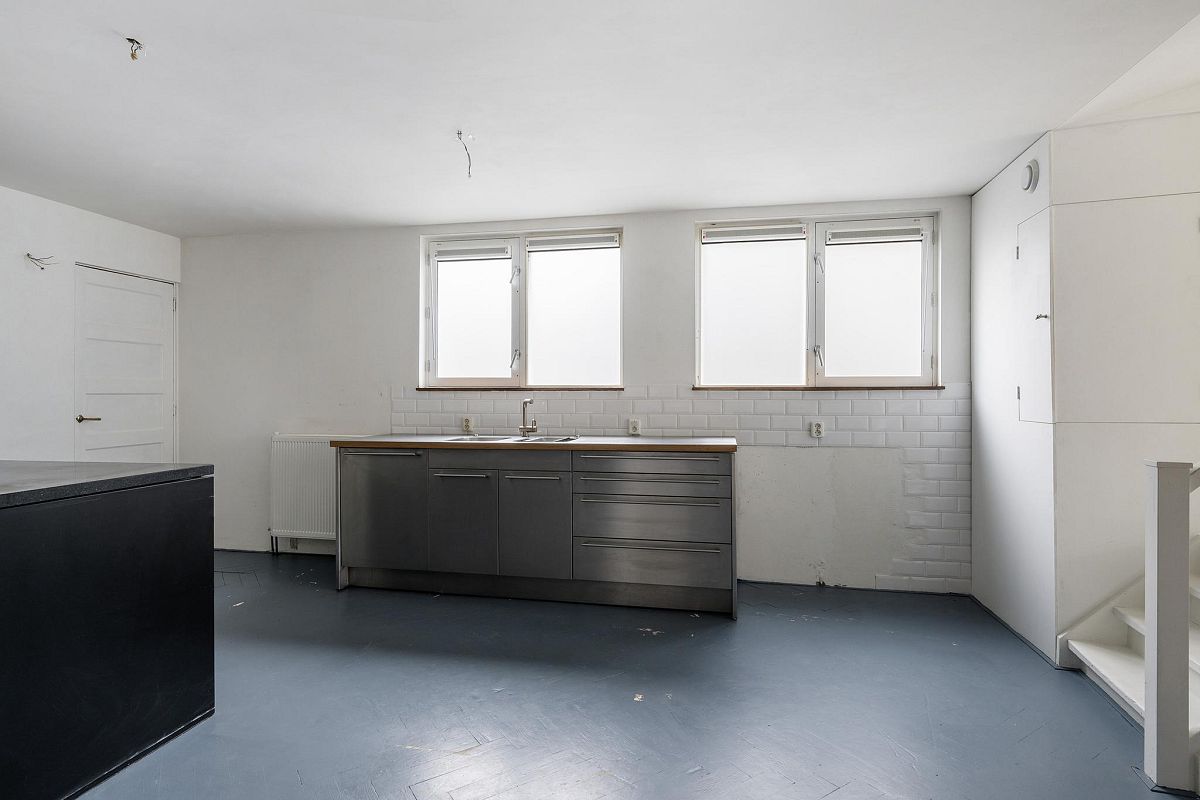 Via een vaste trap bereik je direct de woonkeuken van ca. 28m2. In deze keuken is het heerlijk ruim en licht. Gekozen is voor een industriële opstelling met diverse RVS keuken units en apparatuur: SMEG gasfornuis, afzuigkap, kokend waterkraan, vaatwasser en veel kastruimten. Ingebouwde CV ketel opstelling. Sfeervolle woonkamer van ca. 30m2 met een inbouwkast en een schitterend zicht op de historische haven met bebouwing. Aan de achterzijde bevindt zich nog een slaapkamer van ca. 8,6m2 en een toilet met fonteintje. Wederom een hoog plafond (2,9m) en mooie lichtinval. In 2019 is de vloer volledig vernieuwd door eiken visgraat parket, glad gestucte wanden en er is centrale verwarming aanwezig.