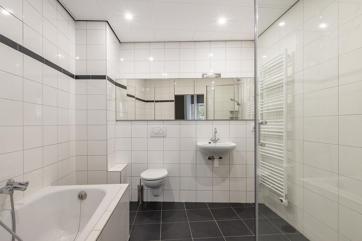 Een mooie ruime slaapverdieping van ca. 36,5m2 ingedeeld in een hoofdslaapkamer van ca. 22,7m, in 2025 vernieuwde walk in closet (2025), (2,64m x 1,98m) en een moderne badkamer (2,64m x 2,64m) voorzien van een wastafel, ligbad, douchecabine en een toilet. De kozijnen zijn van kunststof met dubbelglas