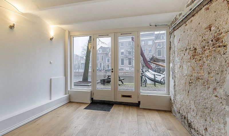 Een bijzonder ruim grachtenpand (type dubbele benedenwoning met slaapetage) gelegen op één van de mooiste plekjes van Schiedam. Midden in het centrum van de jeneverstad Schiedam, tegenover de historische Appelmarktbrug en de Vismarkt.