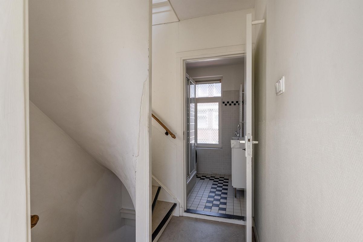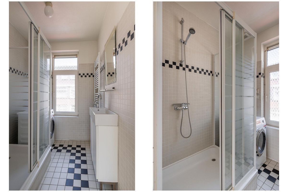 Ruime overloop met trap naar de tweede verdieping. Separaat toilet met fonteintje. Vanuit de overloop is het zonnige balkon van ca. 10 m² bereikbaar. De badkamer is voorzien van een douchehoek, wastafelmeubel, spiegel en radiator, en beschikt bovendien over een raam voor natuurlijk licht en ventilatie. De hoofdslaapkamer van ca. 16 m² heeft een erker en een vaste kastenwand. Ook slaapkamer II (ca. 15,6 m²) beschikt over vaste kasten.