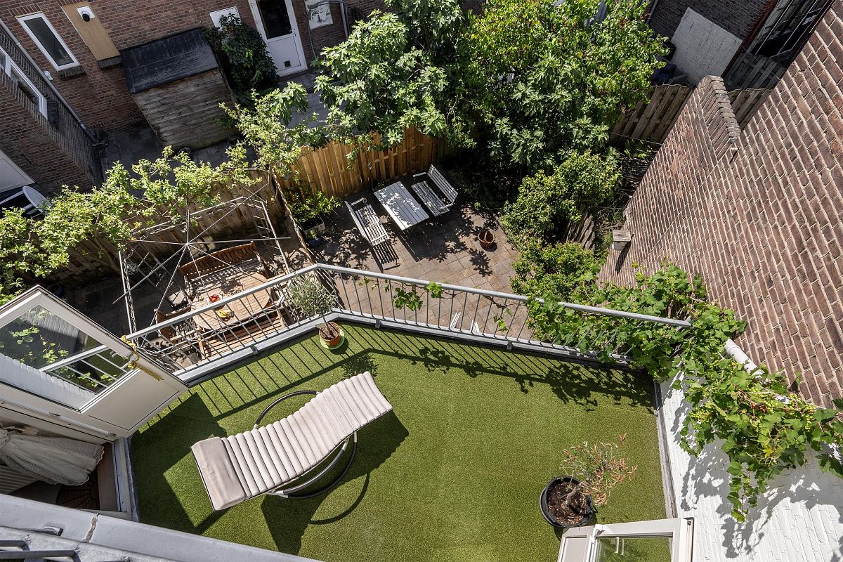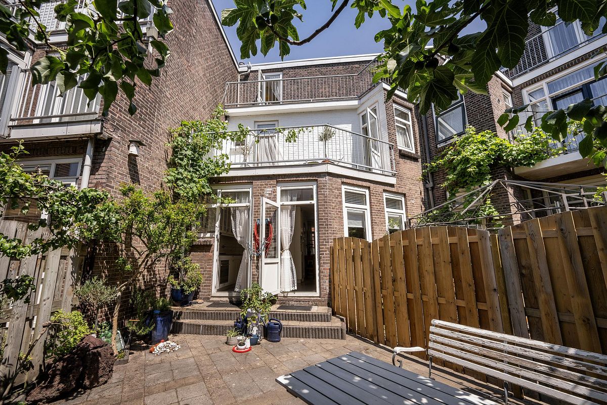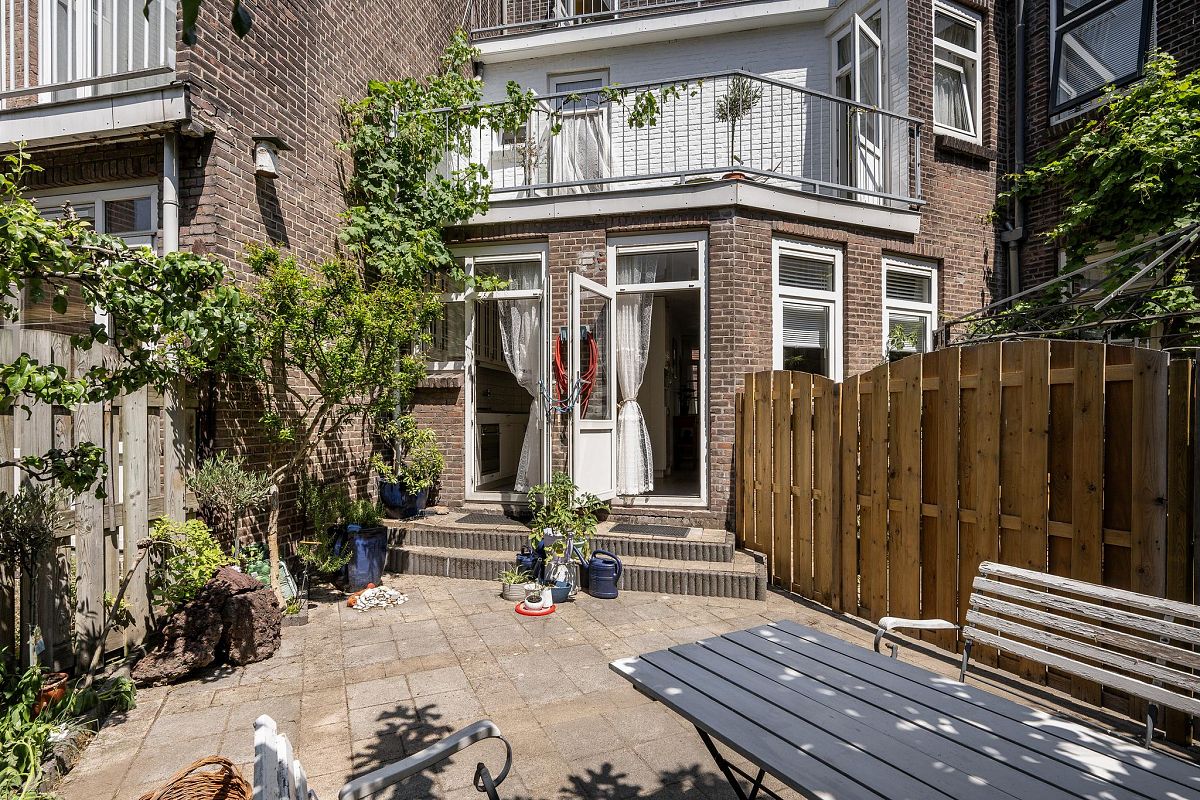 Zonnige, recent aangelegde achtertuin van ca. 39m², met o.a. een fraaie vijgenboom. Twee riante balkons op de verdiepingen zorgen voor extra buitenruimte.