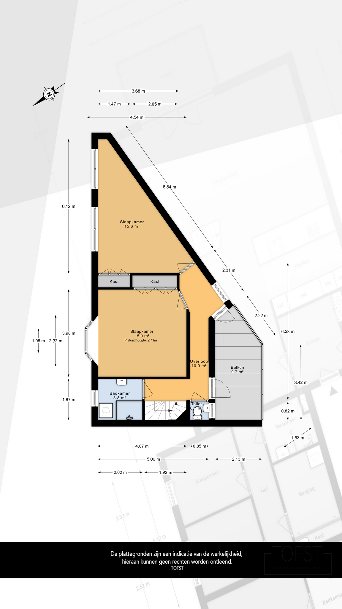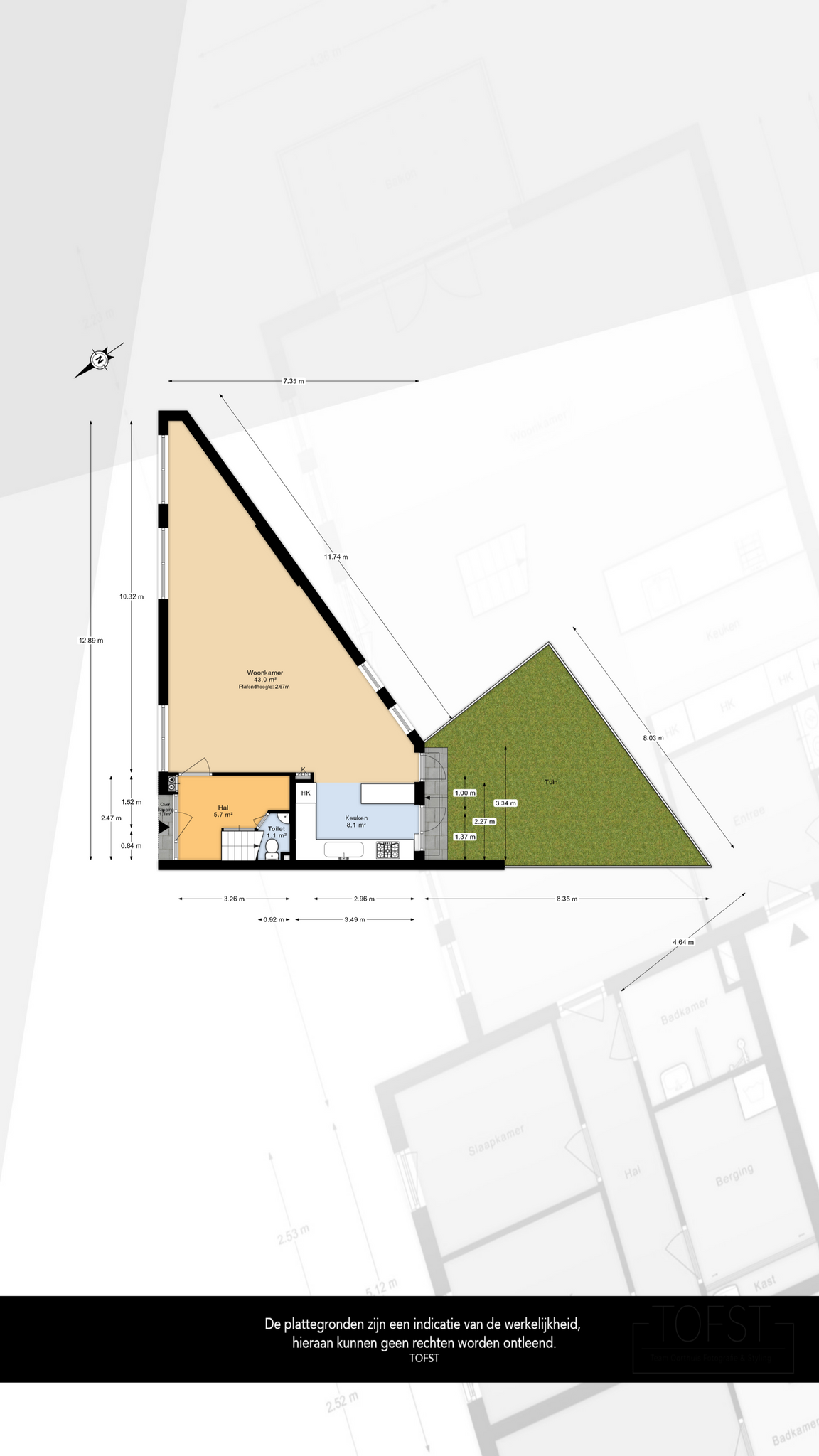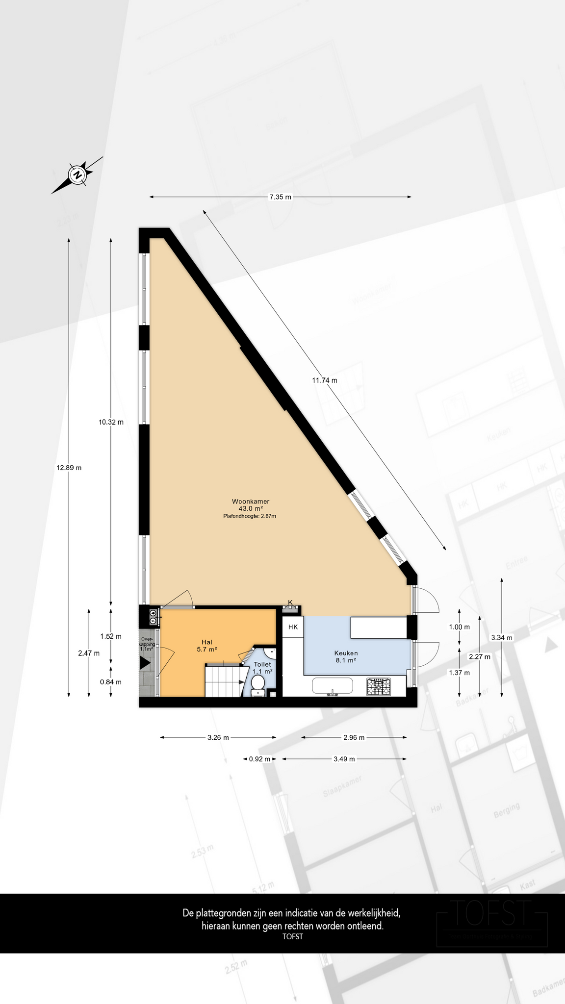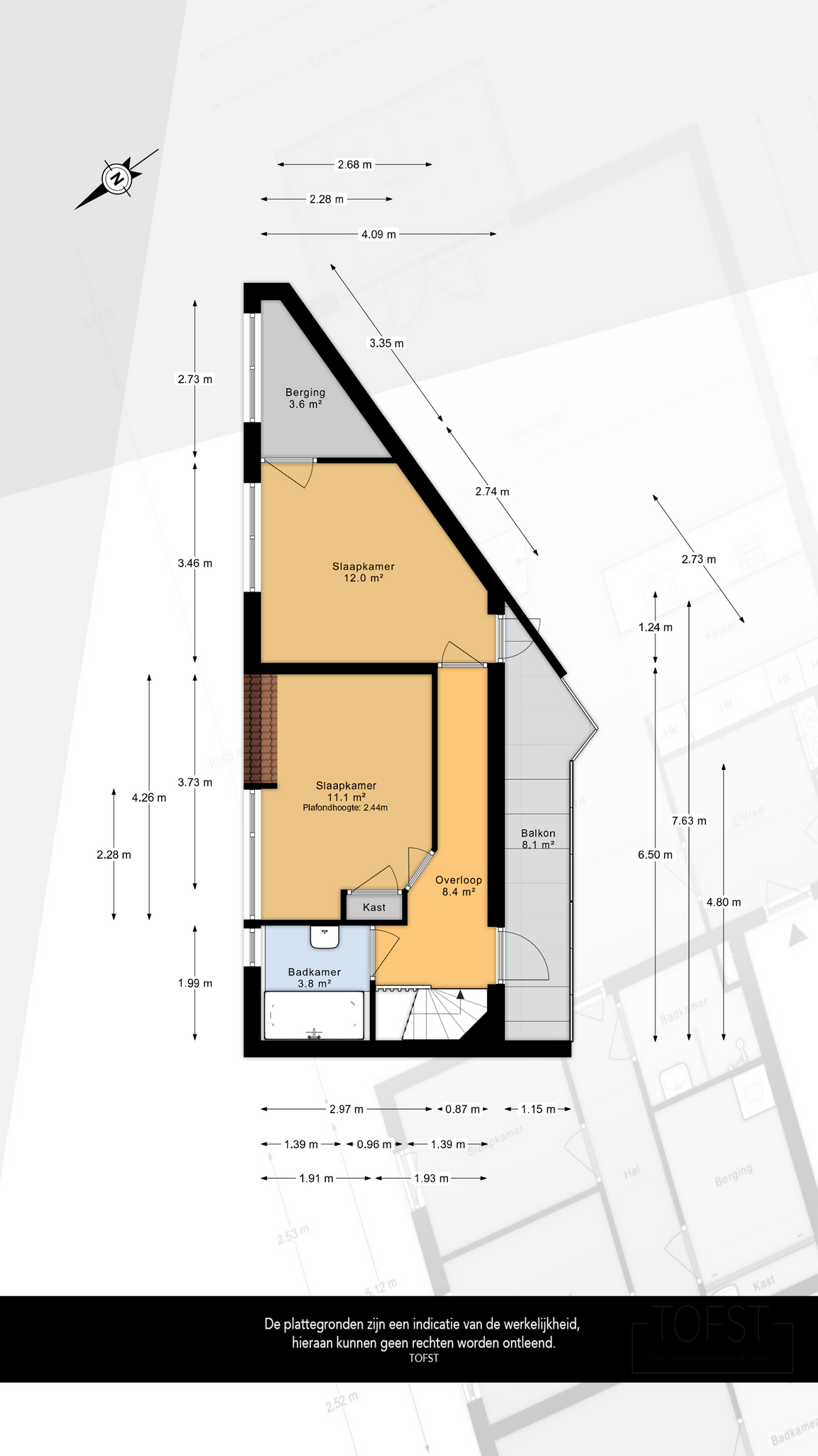 De gebruiksoppervlakte is vastgesteld volgens de NEN 2580 meetinstructie, die bedoeld is om een eenduidige manier van meten te hanteren. Kleine afwijkingen zijn mogelijk. Indien exacte afmetingen van cruciaal belang zijn, adviseren wij om deze zelf na te meten.