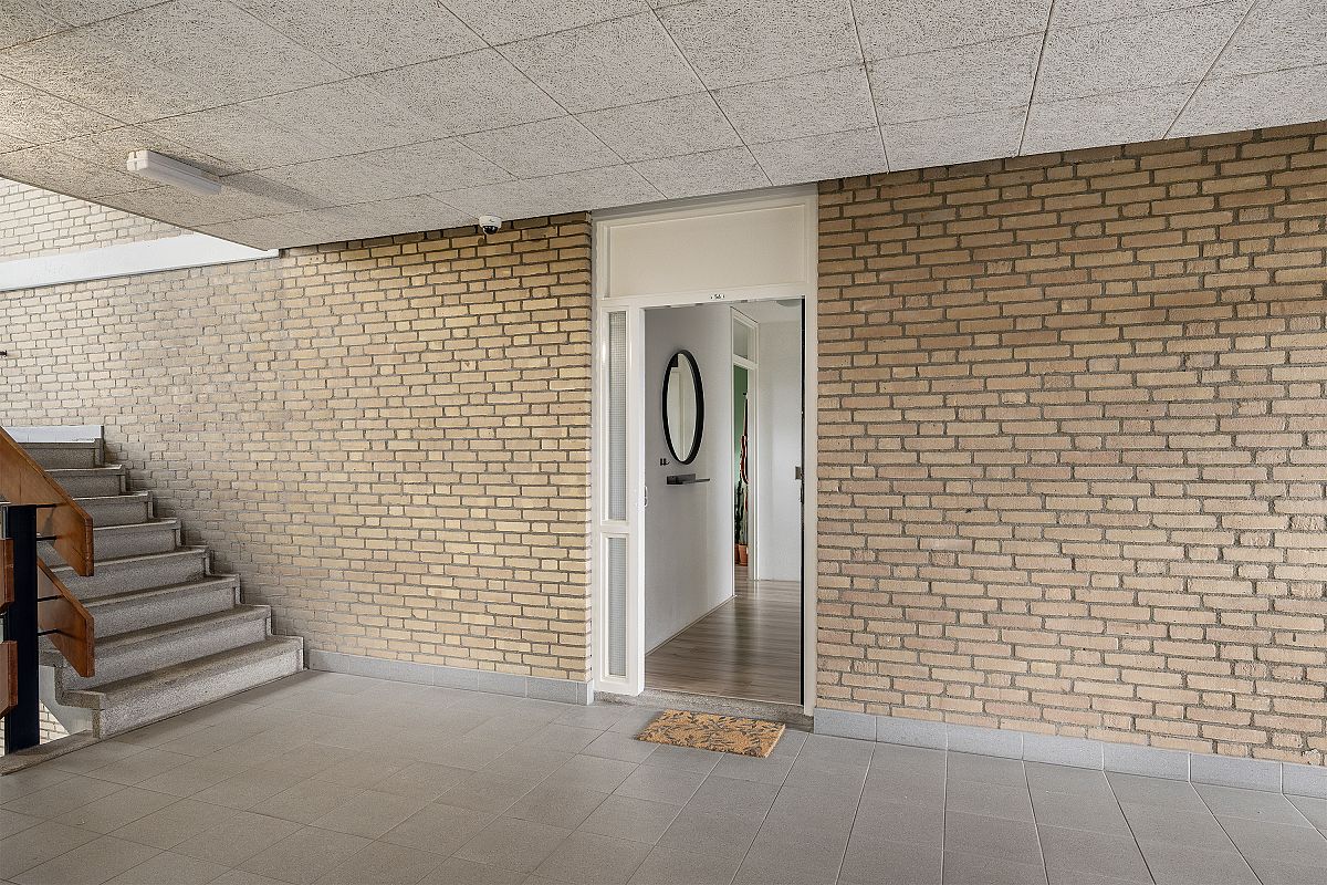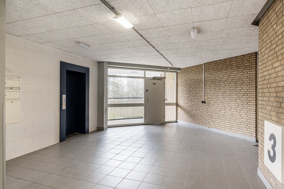 Afgesloten gemeenschappelijke entree en bellentableau met video intercom. Toegang tot de bergingen, trappenhuis en liften.