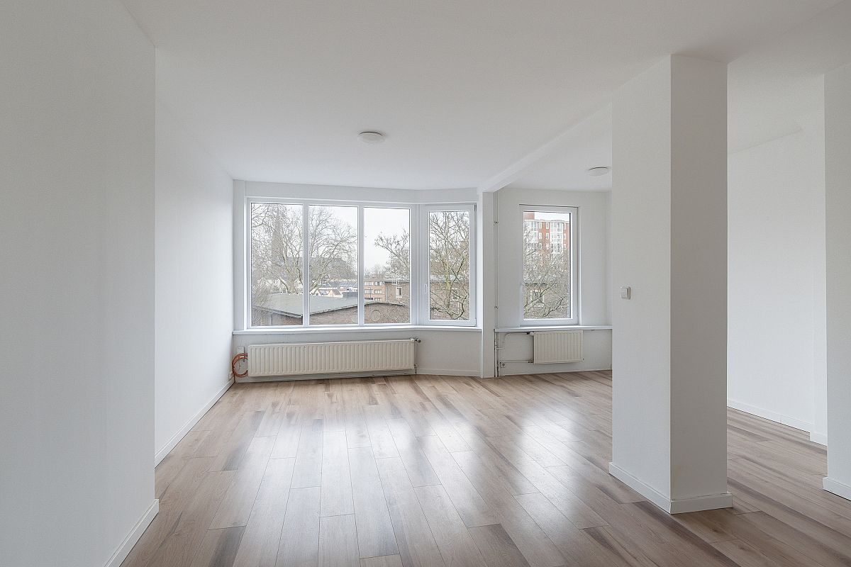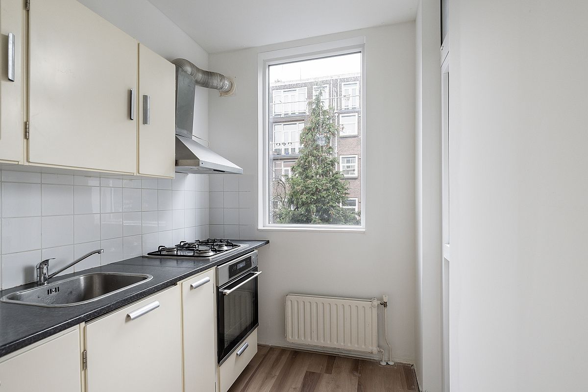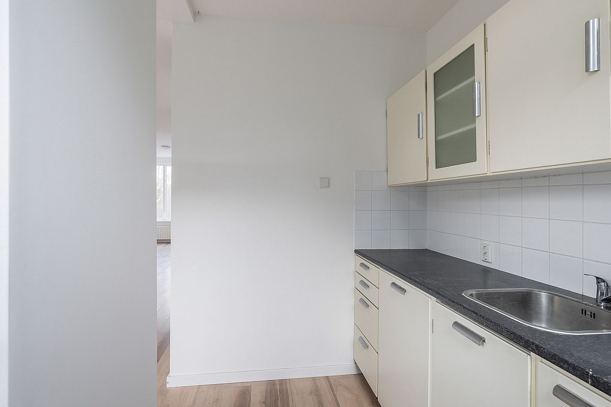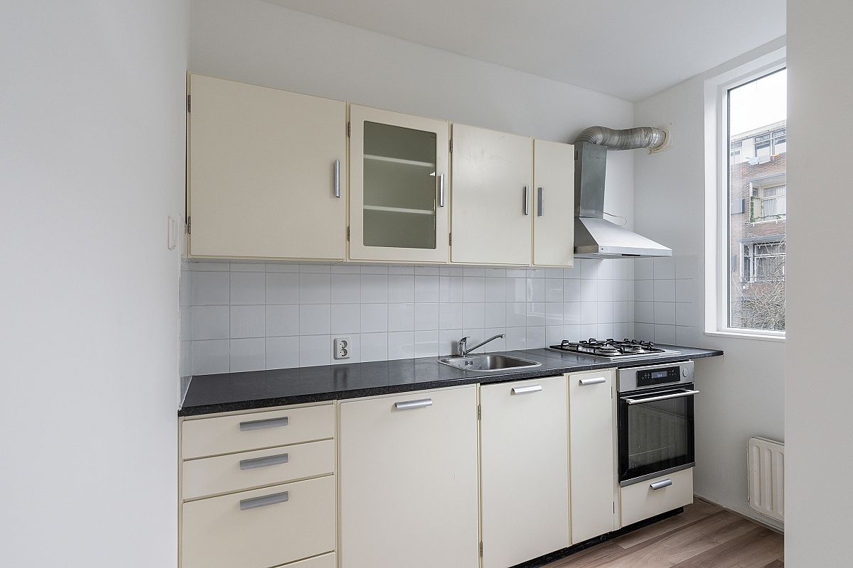 Hal met een toilet v.v. een handwasbakje. Sfeervolle ruime woonkamer met een erker van totaal ca. 38m2. Vanuit de woonkamer is een leuk vrij zicht aan de voorzijde. Aan de achterzijde kan je via de schuifpui en de keuken het balkon bereiken. Half open keuken aan de voorzijde van ca. 5,1m2. De keuken is voorzien van een oven, afzuigkap, gaskookplaat en een koelkast. Veel kastruimten en toegang naar het balkon.