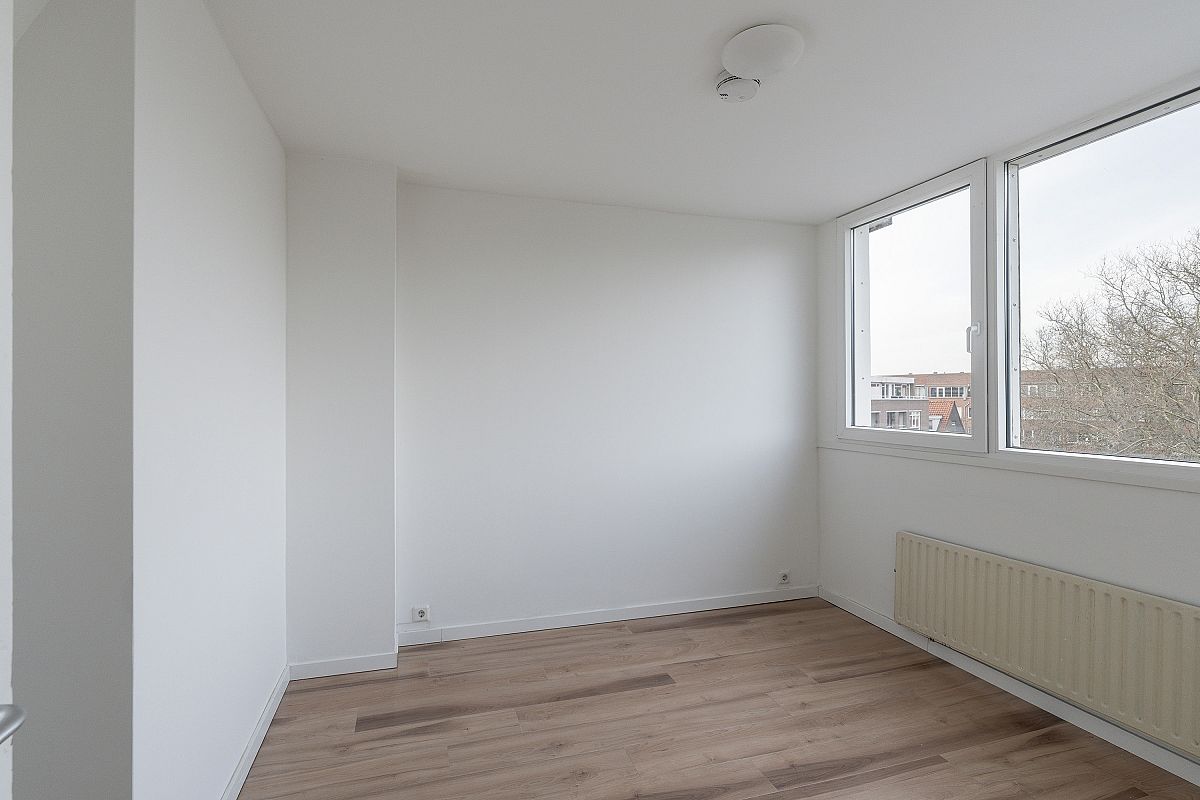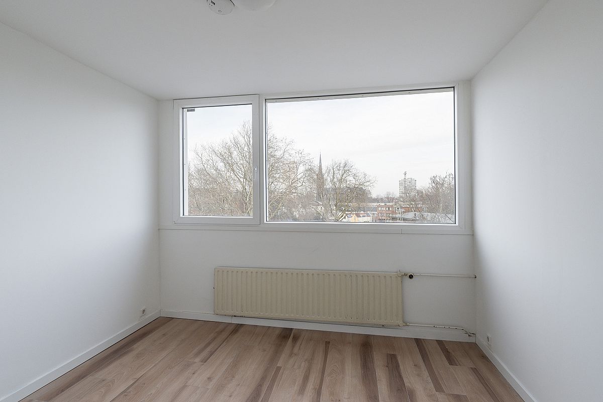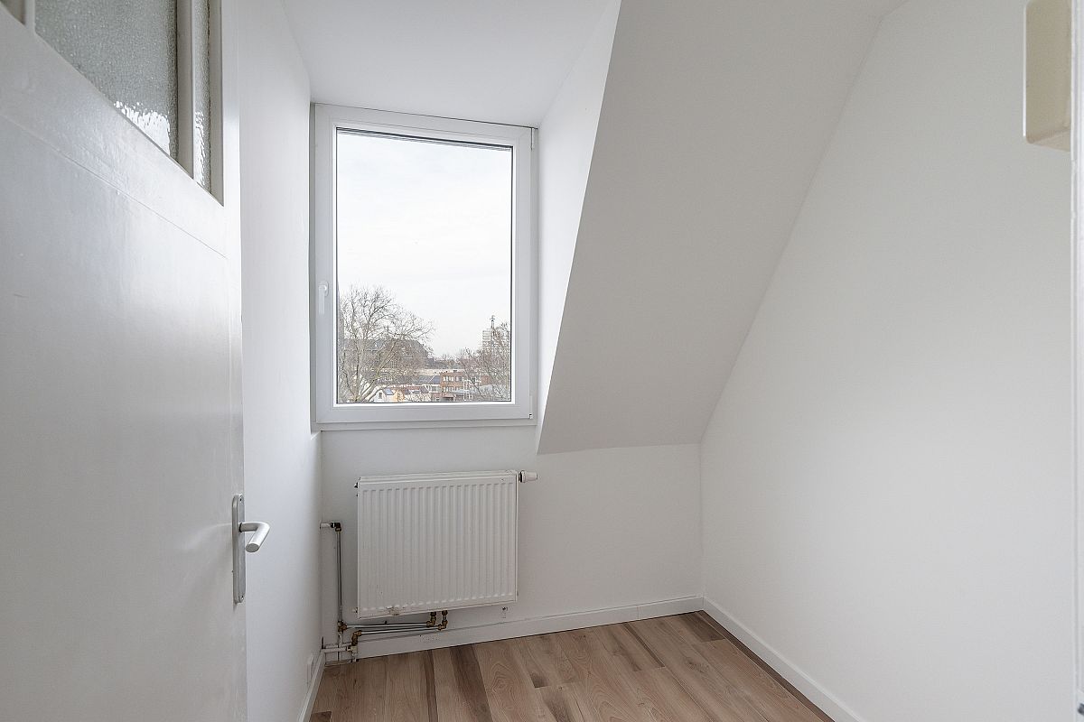Mooie grote slaapkamer/werkkamer met 2 dakramen (plafondhoogte van 2,43m). Door de verplichte nennorm 2580 meting zijn alle m2 onder de 1,5m niet meegenomen en is er 5,4m2 berekend. Deze kamer is feitelijk veel groter ca. 14m2.