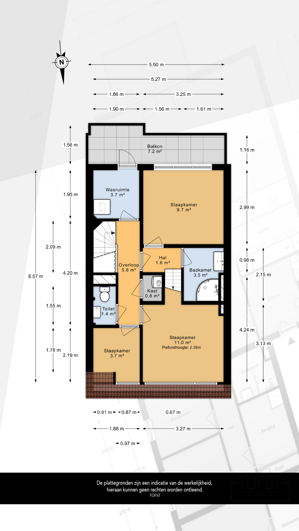 Balkon aanwezig op de woonverdieping van ca. 3,7m2 en de slaapverdieping van 7,2m2.
