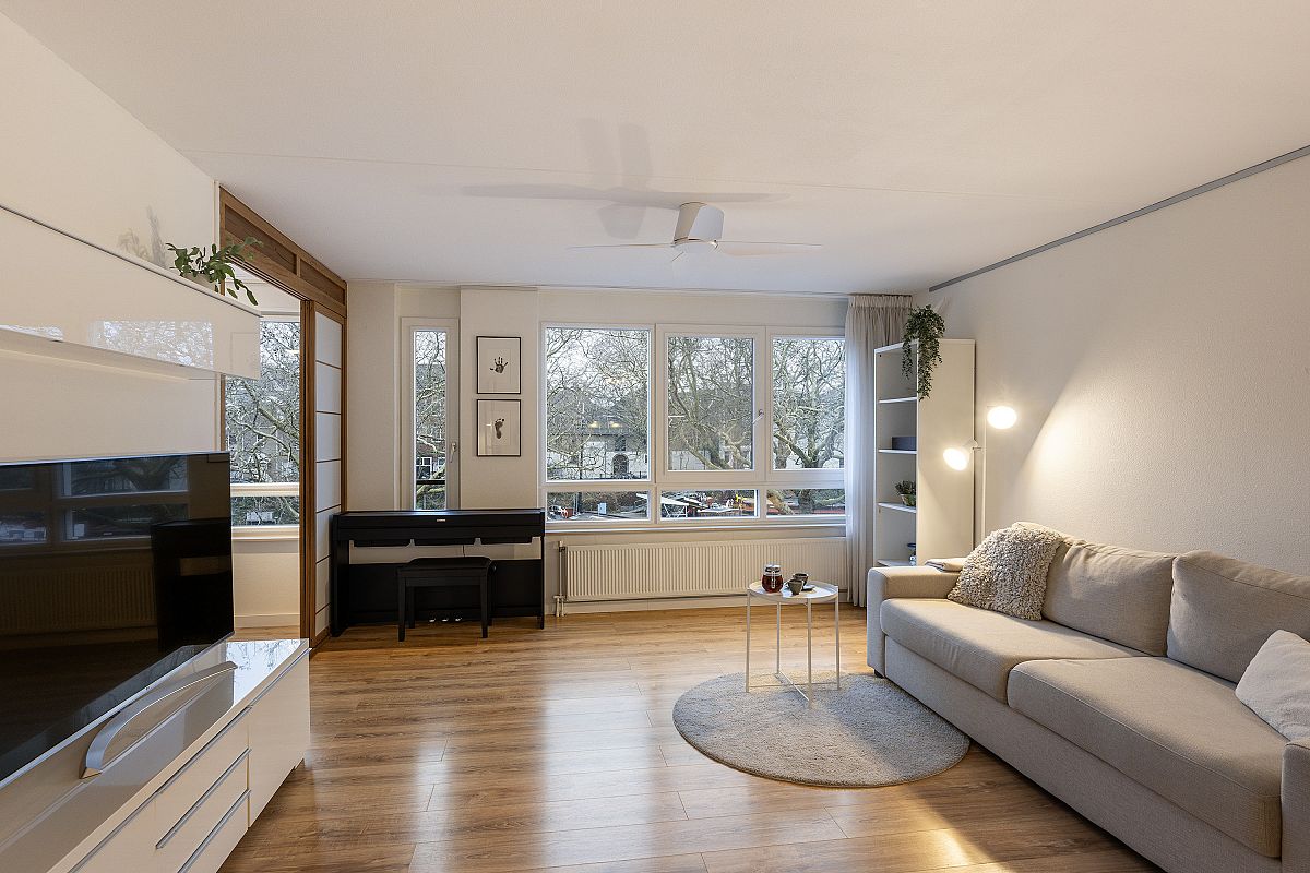 The apartment has a pleasant vibe and is neatly maintained. The apartment complex, with an elevator, is small and well-maintained by an active homeowners' association. The apartment is freehold and enjoys a beautiful location on the edge of the harbor and Schiedam's old town center, with its canals and historic buildings.