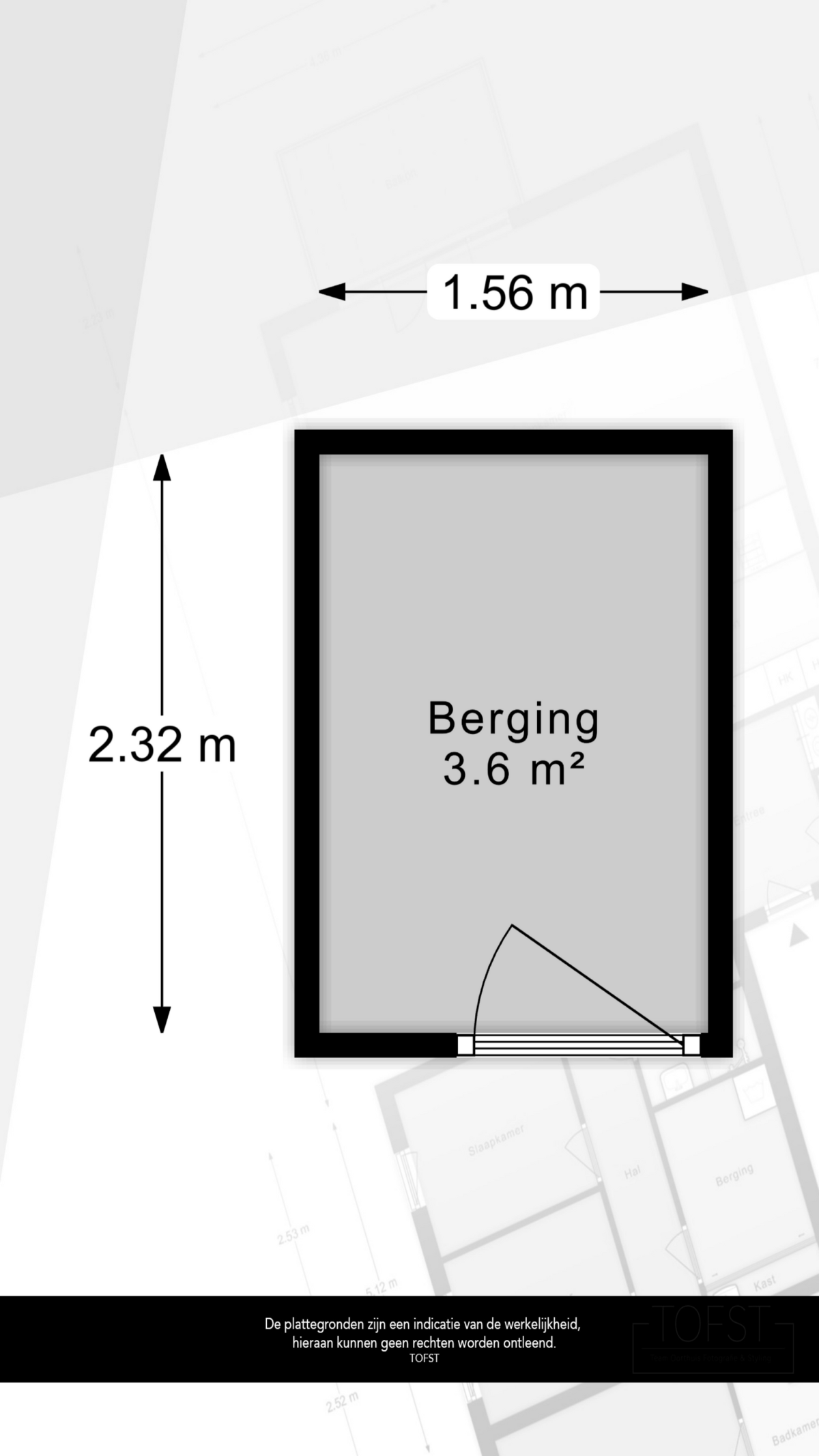 The measurement instructions are based on NEN2580. The Measurement Instructions are intended to provide a more consistent measurement method for providing an indication of the usable area. The Measurement Instructions do not completely eliminate differences in measurement results, for example, due to differences in interpretation, rounding, or limitations in the measurement process. If exact measurements are crucial to a buyer, we recommend verifying them yourself.
