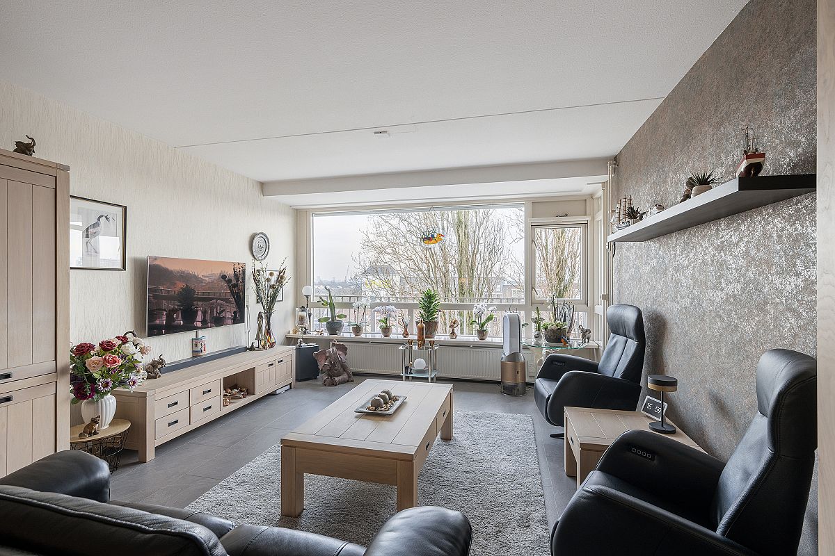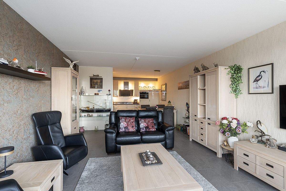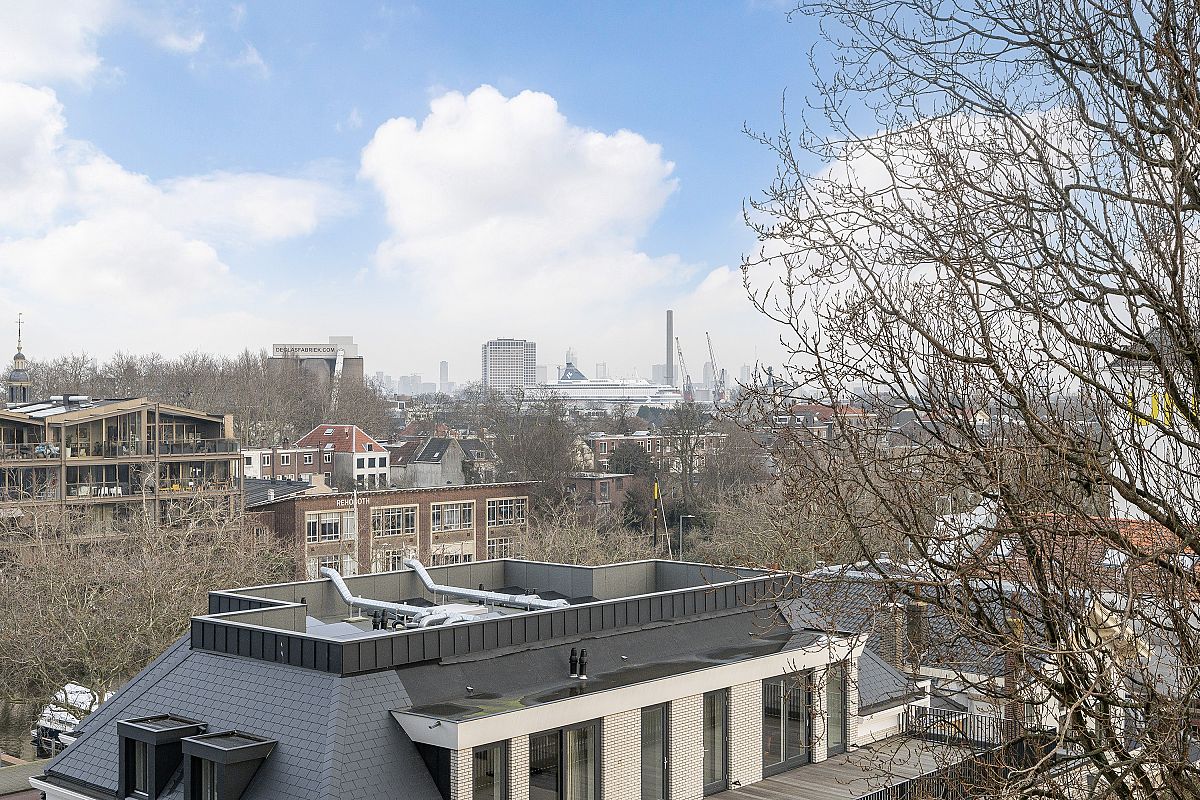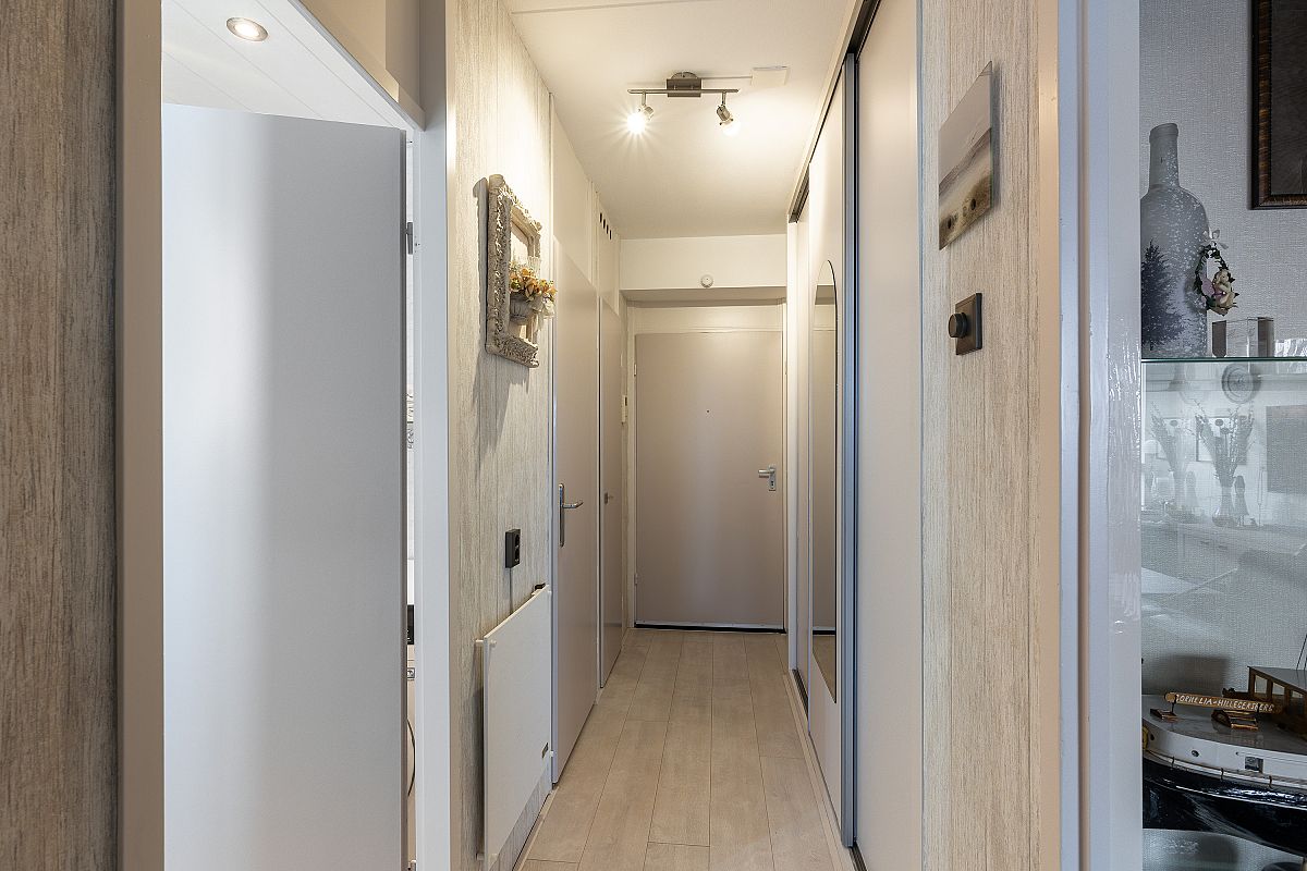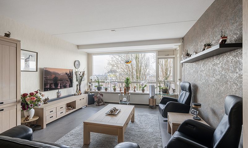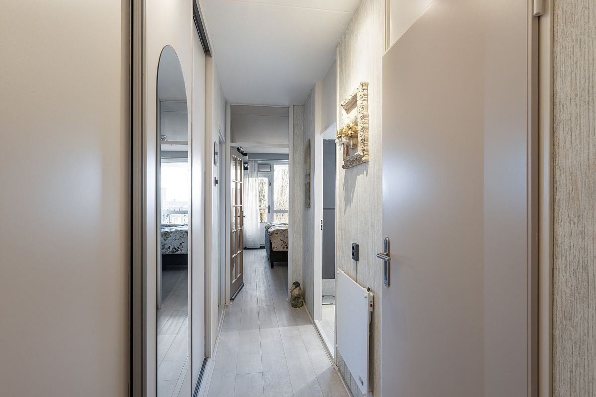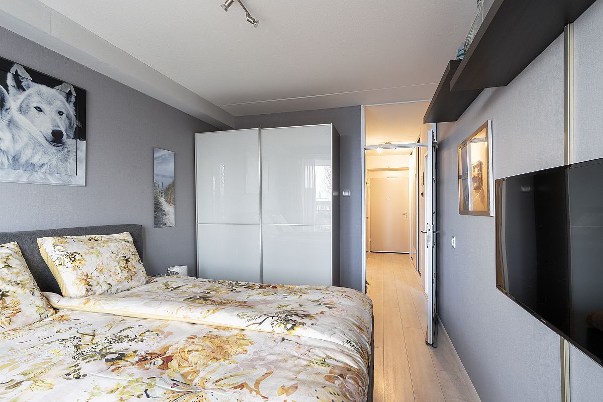 Entrance, hall, videophone, meter cupboard. Internal storage unit with ample storage space and central heating boiler (2017). Modern toilet. Spacious, bright living room of approx. 37.5 m² featuring high-quality laminate flooring. From the living room and balcony, there is a magnificent view over the new harbor and towards the Rotterdam skyline. The open kitchen features a modern kitchen unit with ample cupboard space and the following built-in appliances (2019): induction hob, extractor hood, dishwasher, refrigerator, freezer with freezer drawers, and a combination oven. Spacious bedroom of approx. 13 m² with access to the balcony. Modern bathroom equipped with a shower, vanity unit, and washing machine/dryer setup.